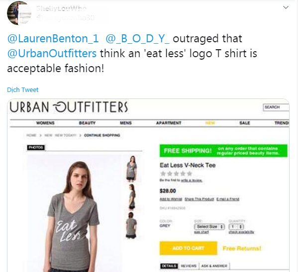 4. Vào năm 2010, khách hàng cáo buộc Urban Outfitters lan truyền thông điệp xấu tới người mắc chứng rối loạn ăn uống thông qua slogan ‘Eat less’ (ăn ít đi).