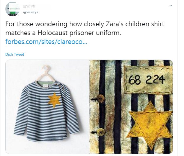 6. Các nhà phê bình mạng đã đánh sập trang web của Zara vào năm 2014 vì mẫu áo trẻ em giống đồng phục tù nhân Holocaust.