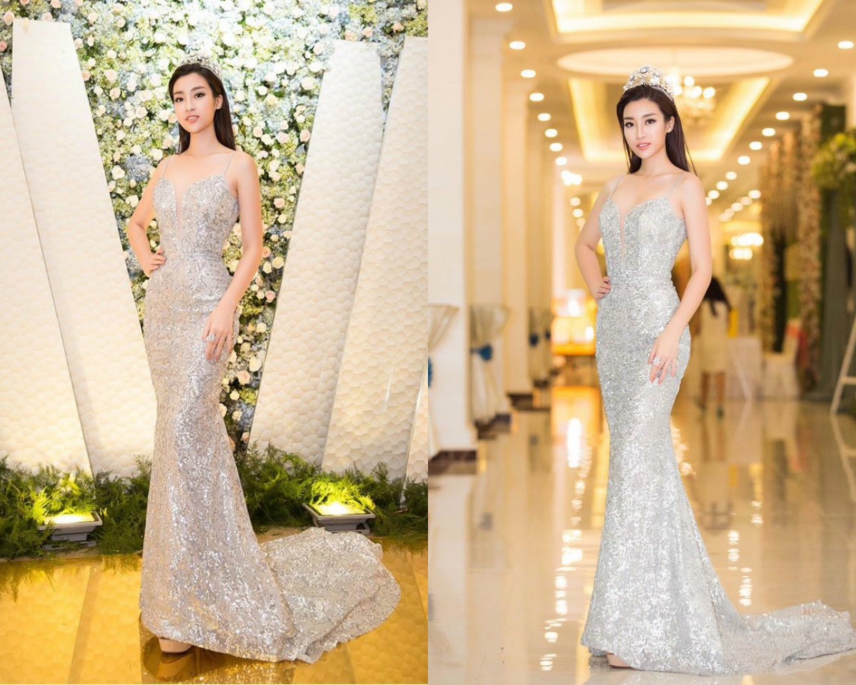 Bộ cánh đuôi cá đầu tiên phải kể đến trong danh sách trên đó chính là chiếc đầm đã giúp cô sinh viên họ Đỗ đăng quang ngôi vị Hoa hậu Việt Nam năm 2016. Thoạt nhìn thiết kế có vẻ như khá đơn giản nhưng chính đặc điểm này giúp cô sinh viên Đại học ngoại thương trở nên tự tin tỏa sáng trên sân khấu.