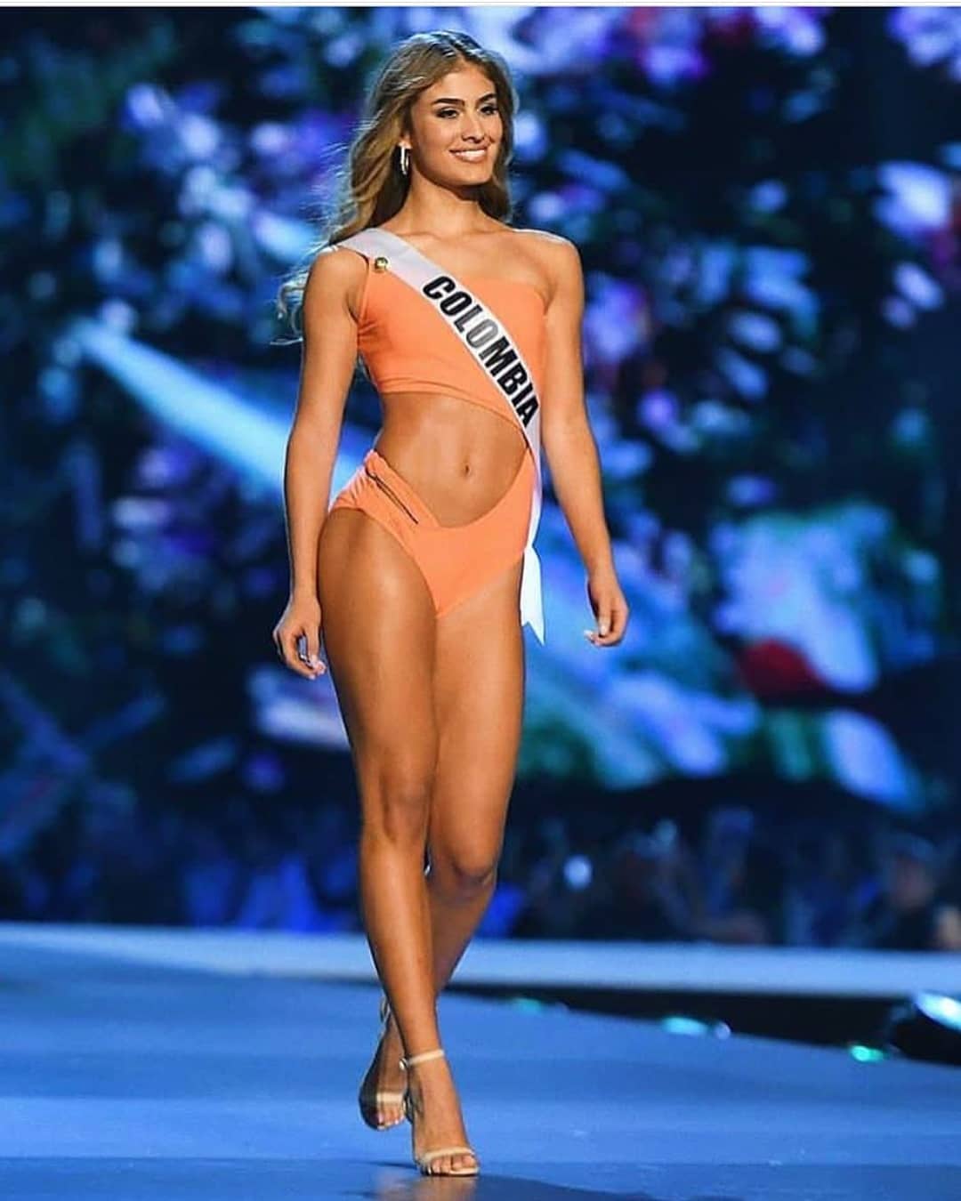 Hoa hậu Colombia “thiêu đốt” sân khấu trong bộ áo tắm màu cam. Quốc gia này đang có phong độ rất tốt tại Miss Universe khi 4 năm liên tiếp nằm trong top 3. Đây là thành tích ấn tượng chưa có quốc gia nào vượt mặt.