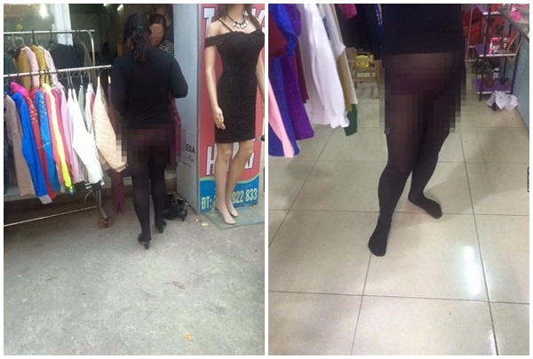 Người phụ này dù mặc áo dài với quần tất da chân để che đi các điểm nhạy cảm nhưng trớ trêu thay, vạt áo cao khiến trang phục này cũng trở thành phản cảm không kém.