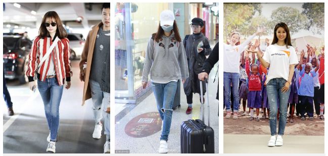 Sau khi giảm cân thành công, Triệu Vy đã tự tin diện các thể loại quần áo trẻ trung, hợp mốt.