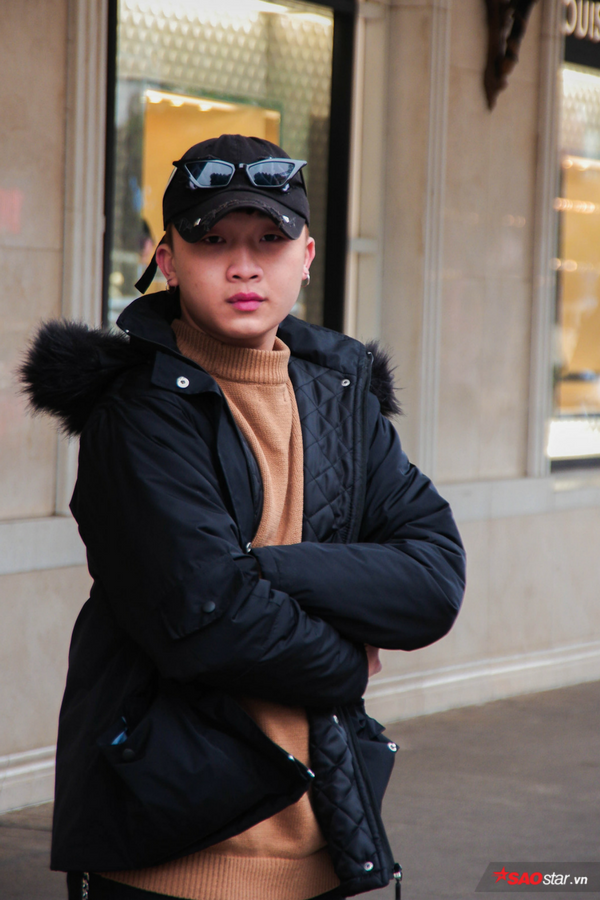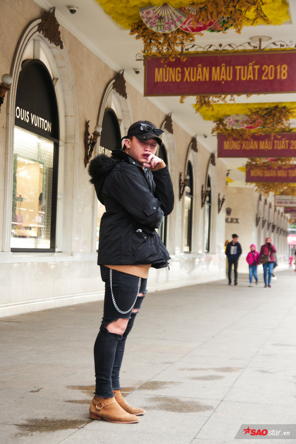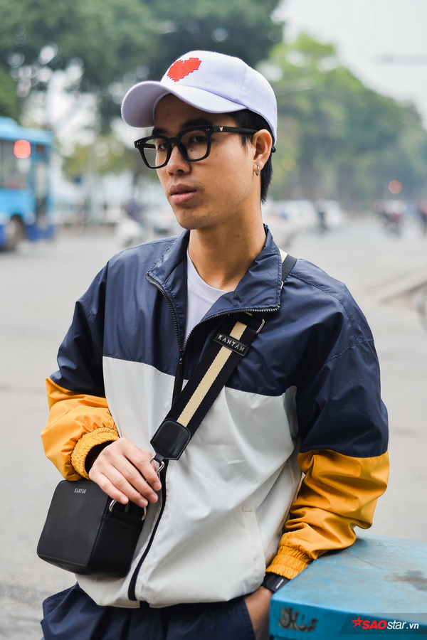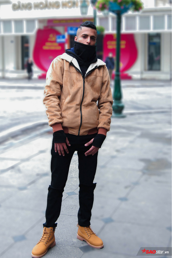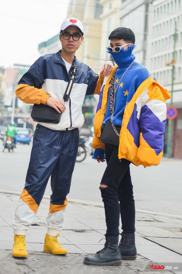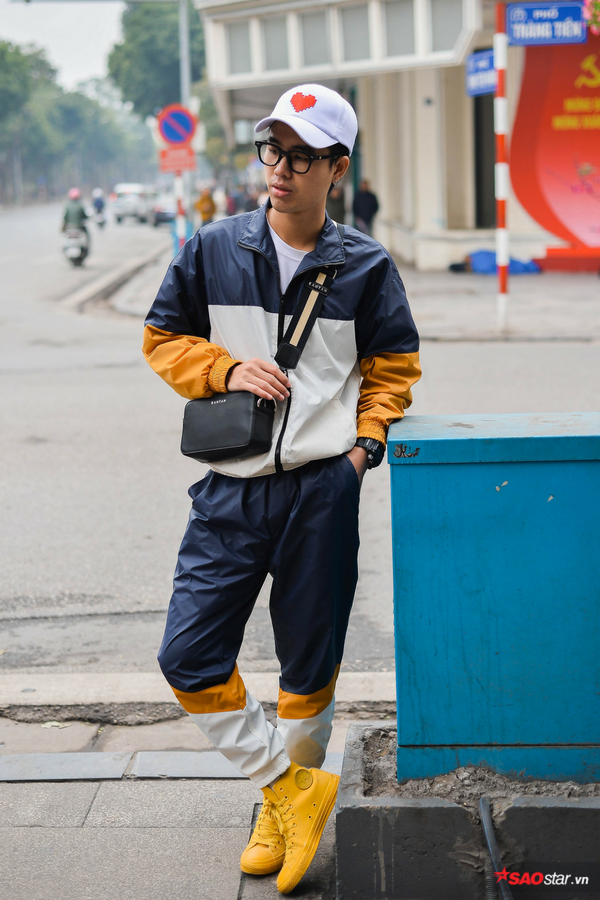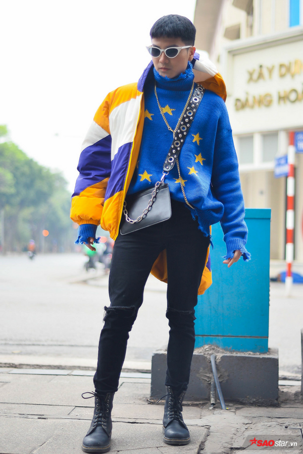 Bạn trẻ này chọn cho mình “cả cây” đồ chống rét màu sắc đồng bộ để đối phó với không khí lạnh của Thủ Đô ngày cuối năm. Với set trang phục với màu xanh - vàng chủ đạo, tín đồ thời trang phối cùng giày cao cổ màu vàng rực cực “ăn rơ” với trang phục.