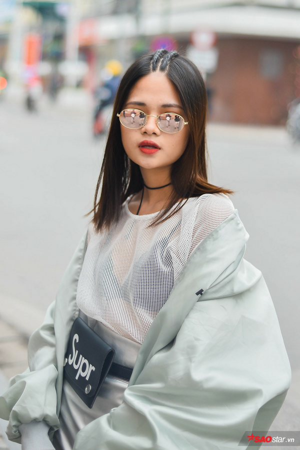 Với thời tiết lạnh của Hà Nội ngày giáp Tết, nhìn trang phục của bạn trẻ này không khỏi khiến người xung quanh phải thốt lên: “Thời trang phang thời tiết là đây”. Áo lưới xuyên thấu phối cùng chân váy mini cứ như thời tiết của mùa hè! Tuy nhiên, bạn cũng ý thức giữ ấm cơ thể bằng chiếc áo khoác ngoài cùng tông màu chiếc váy.