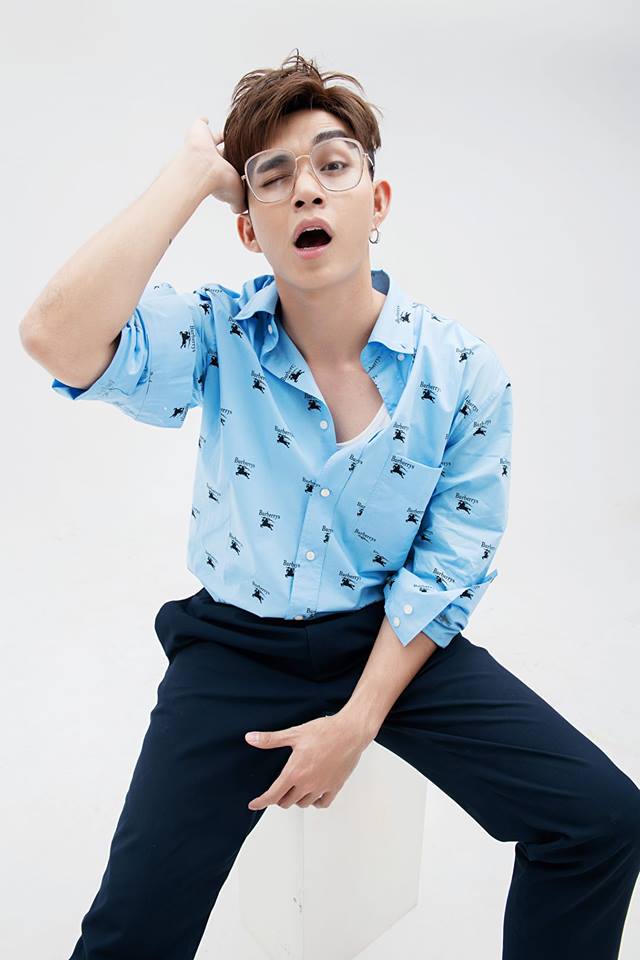 Thế nhưng, đừng nghĩ với gương mặt baby ấy mà nam diễn viên không thể biến hình trong những shoot ảnh cá tính. Áo sơ-mi, quần tây là combo cực kỳ quen thuộc nhưng khi mix cùng kính bản to và cách tạo dáng bỗng trông “lạ” vô cùng.