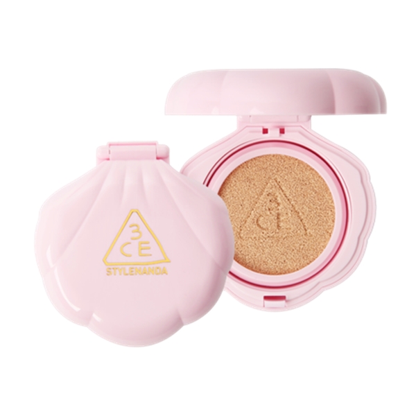 Ngoài son môi là sản phẩm được mong chờ nhất của 3CE thì LOVE 3CE lần này cũng vô cùng đa dạng với cushion được thiết kế như hình vỏ sò màu hồng nhạt, ngỏ gọn và khá xinh xắn.