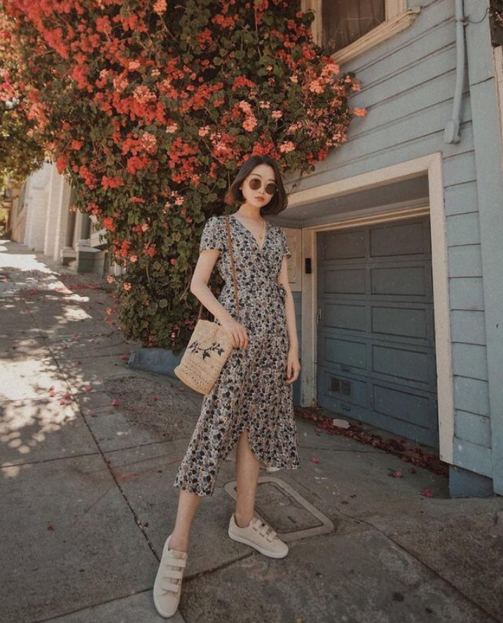 Hoạ tiết hoa có đặc điểm “hack” tuổi cực đỉnh, làm cho các cô gái chúng mình hoá mình một cô công chúa lạc trong vườn hoa, thơ mộng, dịu dàng.