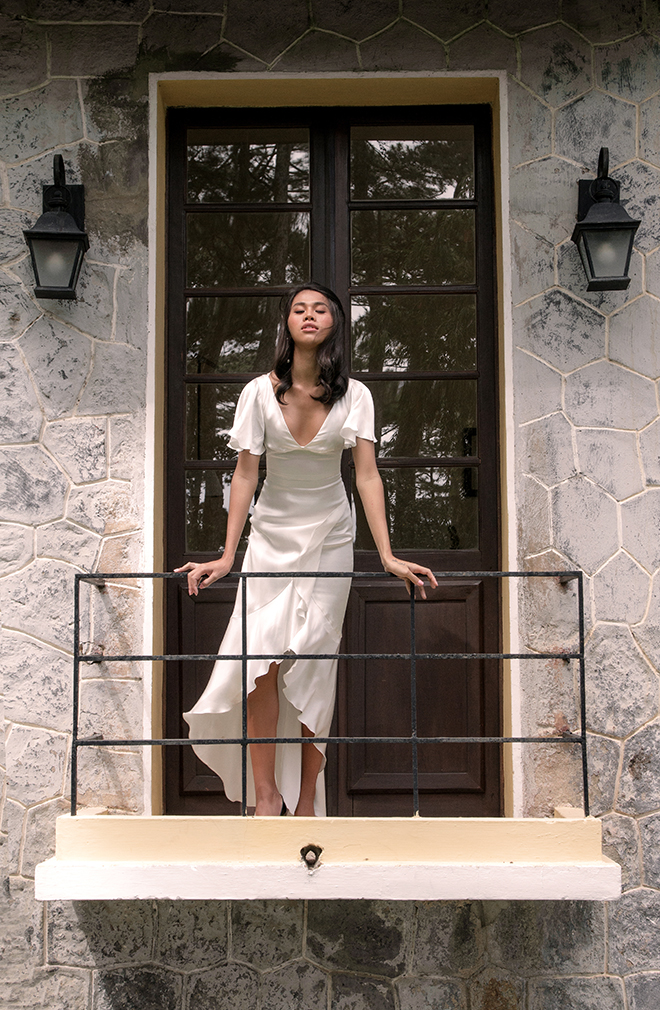 2. Nếu bạn là một “bánh bèo” đích thực thì chiếc đầm trắng dài với đường cắt xẻ táo bạo cũng là một lựa chọn hợp lý.