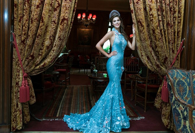 Iris Mittenaere, mỹ nhân đến từ nước Pháp xinh đẹp là Hoa hậu Hoàn vũ đăng quang vào năm 2016. Đến với đấu trường nhan sắc Miss Universe, người đẹp chọn NTK Hoàng Hải để “đo ni đóng giày” cho phần trang phục dạ hội.