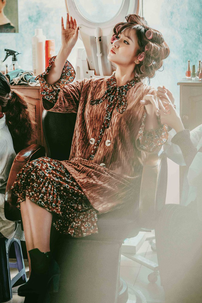 Váy vintage chủ yếu là váy dài quá gối, may từ vải voan.