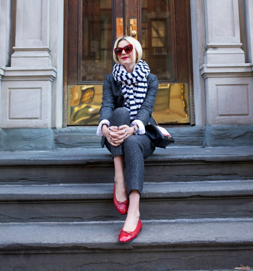 Các tín đồ thời trang có thể mix giày búp bê cùng tông màu với áo để tạo nên một tổng thể vô cùng sành điệu như thế này.