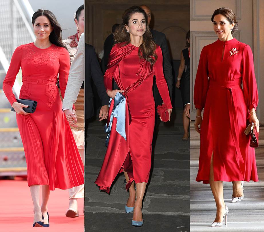 Công nương Meghan, nữ hoàng Rania và công chúa Mary xuất hiện lộng lẫy trong chiếc đầm đỏ thắm.