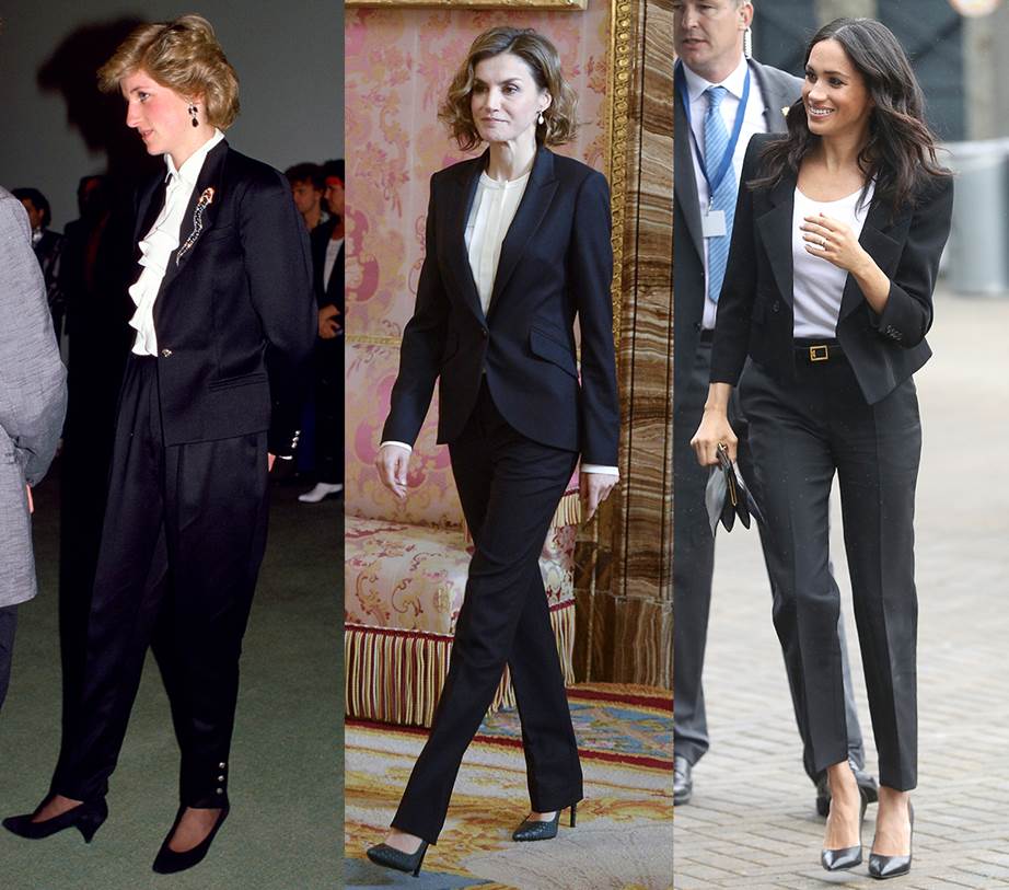 Menswear là phong cách được hầu hết các phụ nữ hoàng gia ưa chuộng bởi sự quyền lực và thanh lịch mà nó mang đến. Công nương Diana từng diện trang phục menswear để đời vào năm 1986, công nương Meghan và nữ hoàng Rania xuất hiện quyền lực trong trang phục này.