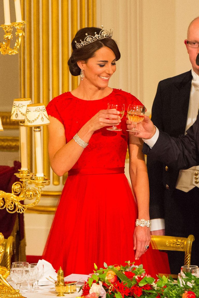 Nữ Công tước xứ Cambridge đội vương miện trong một buổi tiệc ngoại giao.