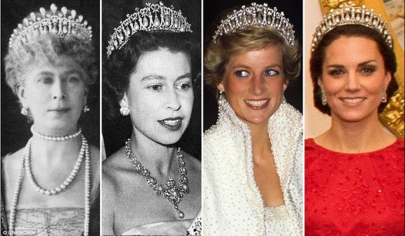 Chiếc vương miện nạm kim cương và ngọc trai đã từng được Hoàng hậu Mary, Nữ hoàng Elizabeth II và cố Công nương Diana đội