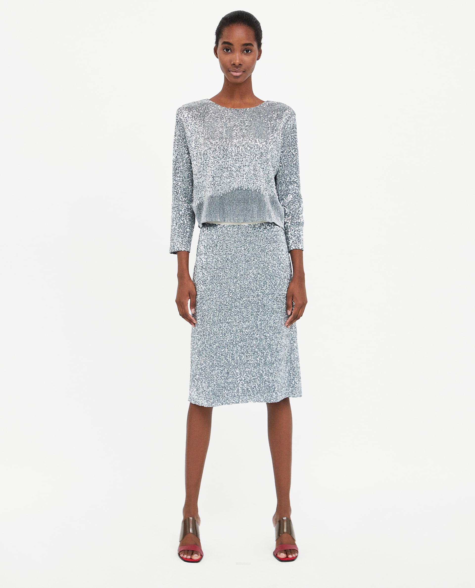 Nếu cảm thấy ngại ngần vì trang phục quá quyến rũ, còn gì thích hợp hơn cả cây áo và quần cùng tông chất liệu ánh kim. Chỉ cần thêm đôi cao gót cùng tông, nàng đã sẵn sàng xuống phố.