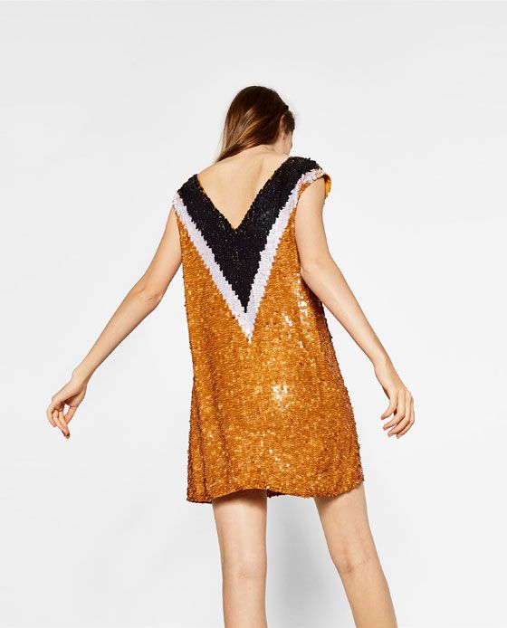 Chất liệu kim sa cũng là một lựa chọn hoàn hảo cho nàng mong muốn mình trở nên nổi bật nhất, chiếc váy kim sa cổ V này đảm bảo sự sexy và tỏa sáng cho người mặc nó.