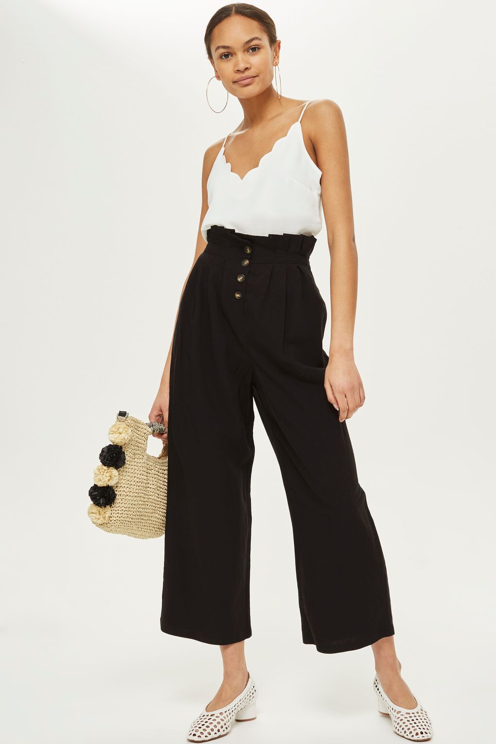 Áo hai dây đóng thùng cùng quần culottes là công thức cho những tín đồ thời trang muốn sexy một tí khi đến văn phòng. Tuy nhiên, bạn cũng chỉ nên lựa chọn các tông màu trung tính, tránh các items nhiều màu sắc, họa tiết. dễ gây phản cảm.