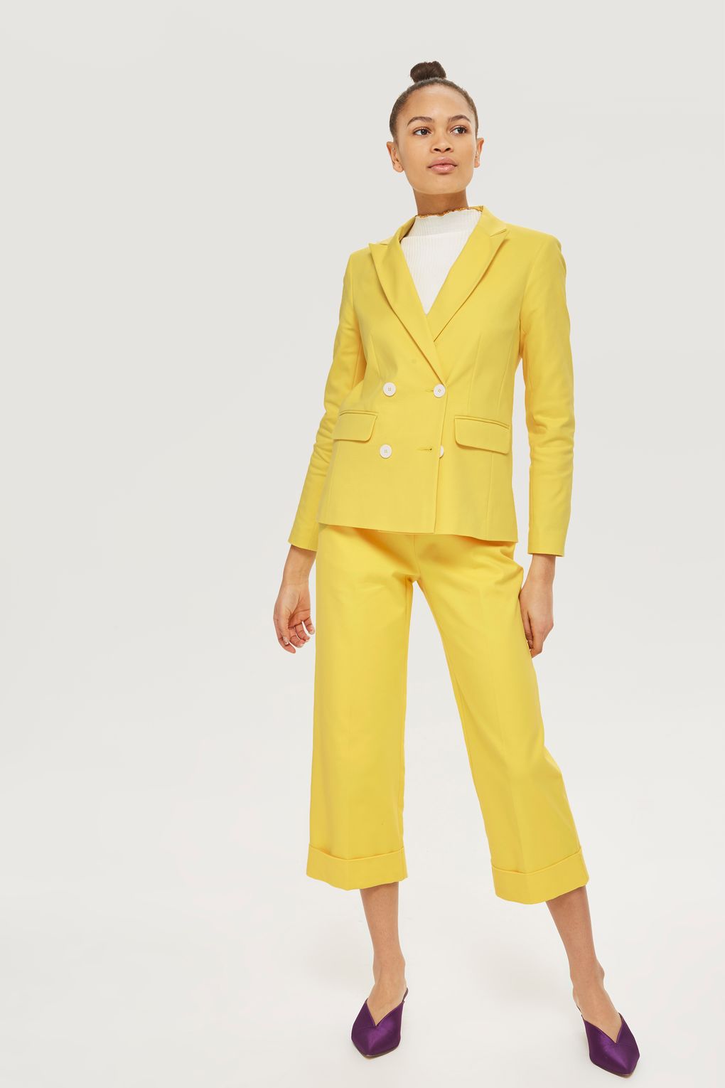 Gam màu vàng sáng chắc chắn sẽ khiến bạn nổi bật nhất văn phòng vào ngày đặc biệt. Việc phối cùng áo kiểu thay cho sơ mi thường thấy sẽ khiến bạn trông thời thượng hơn rất nhiều. Các nàng cũng không nên bỏ qua phần phụ kiện, một đôi giày cổ chữ V đúng mốt năm nay là lựa chọn hoàn hảo khiến bạn tỏa sáng hơn bao giờ hết.
