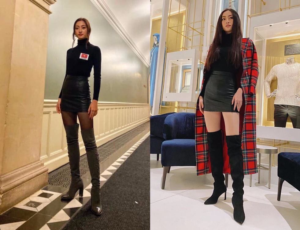 Chỉ thay đổi boots cao, và thêm bớt chiếc áo măng tô, diện mạo của Lương Thùy Linh trong cả hai lần diện lại bộ cánh này quá khác biệt. Ở lần diện sau cô được đánh giá đẹp hơn cả lần diện trước.