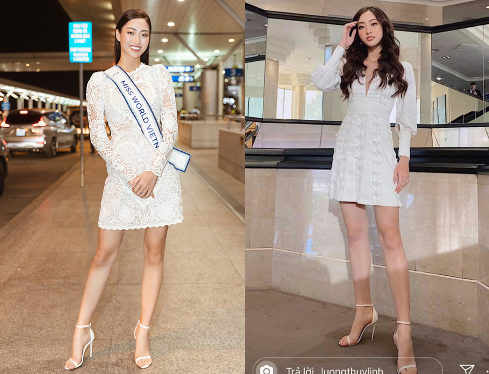 Đôi giày cao gót mang ở sân bay lúc lên đường dự thi lại được tái sử dụng trong cuộc thi. Những mẫu giày sandals tối giản được Lương Thùy Linh chú trọng vì khả năng tái sử dụng cao, có thể dùng cùng nhiều bộ cánh và các sự kiện khác biệt.