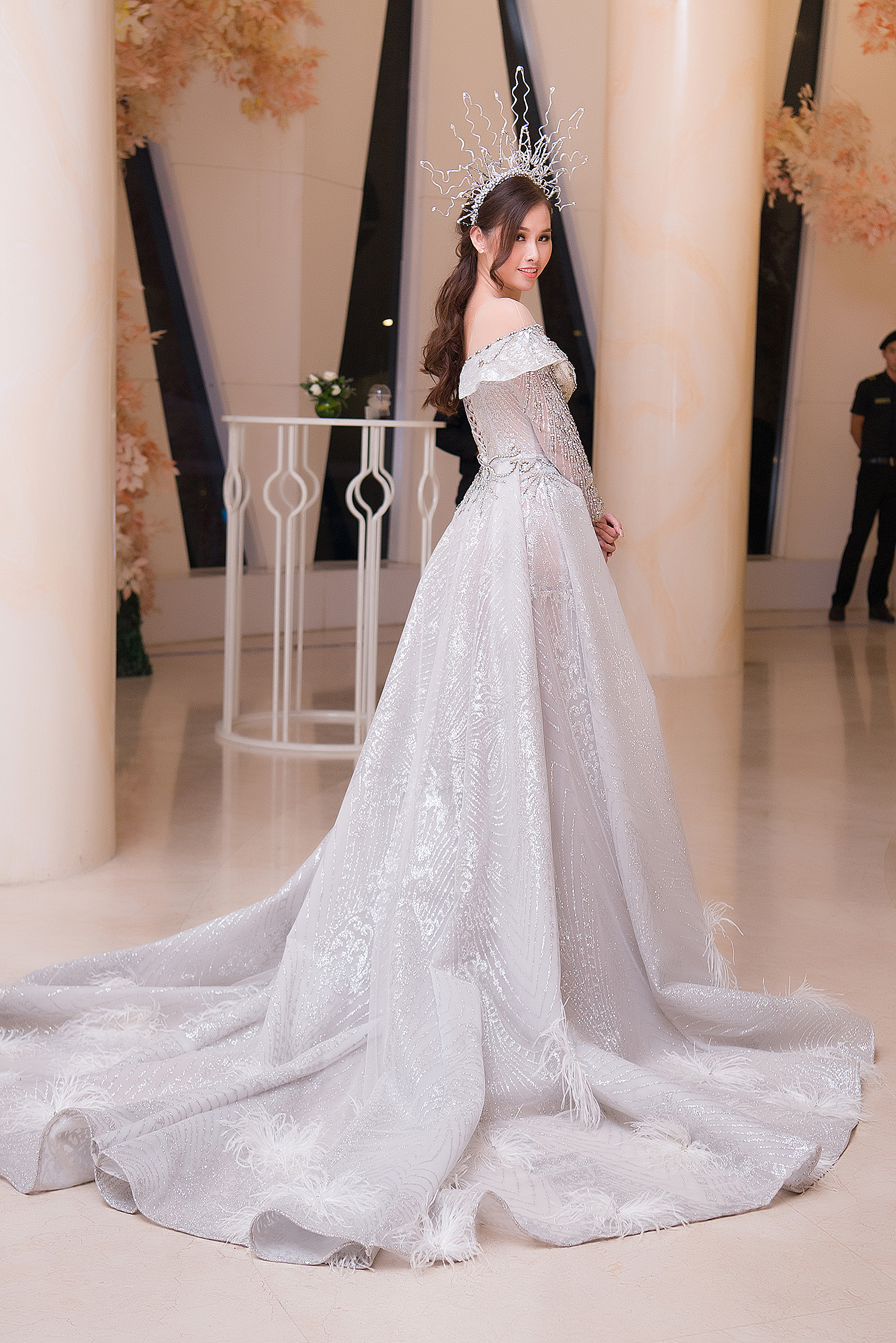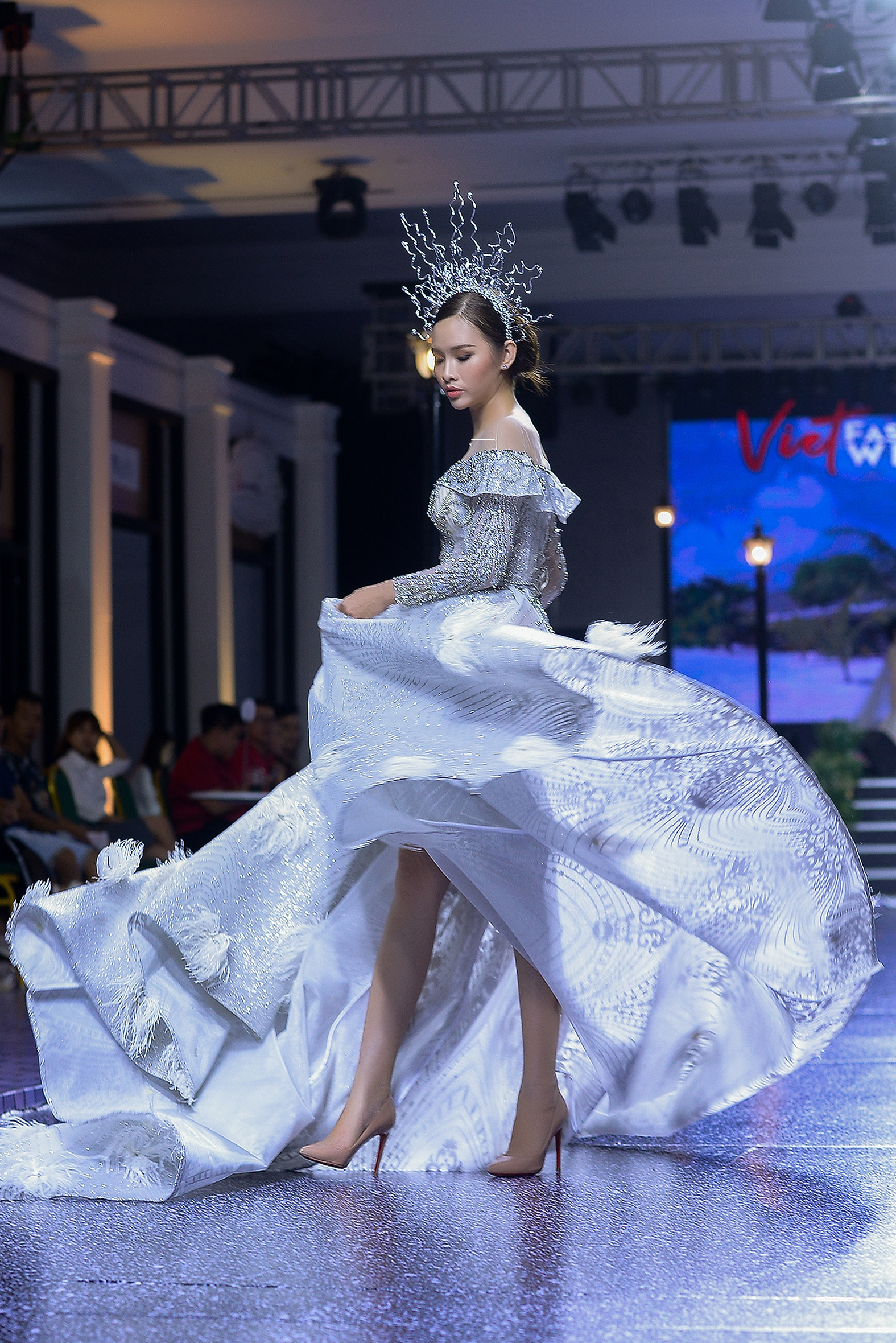 Người đẹp Sài thành có dịp khoe thần thái sắc lạnh cùng những bước catwalk chuyên nghiệp trên sàn diễn. Đặc biệt, chiếc vương miện làm nhiệm vụ tôn lên vẻ đẹp quyền lực, sắc lạnh cho chân dài.