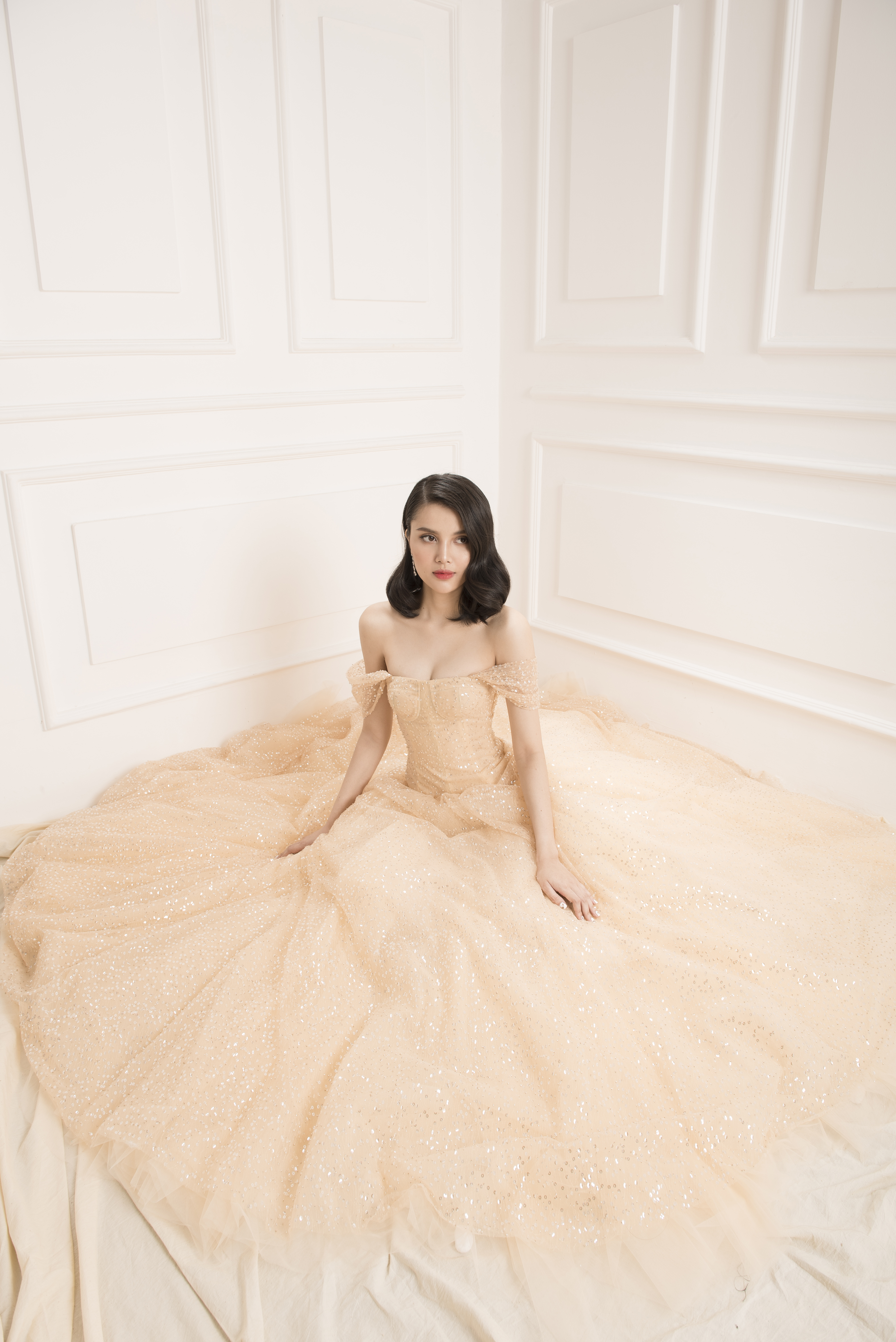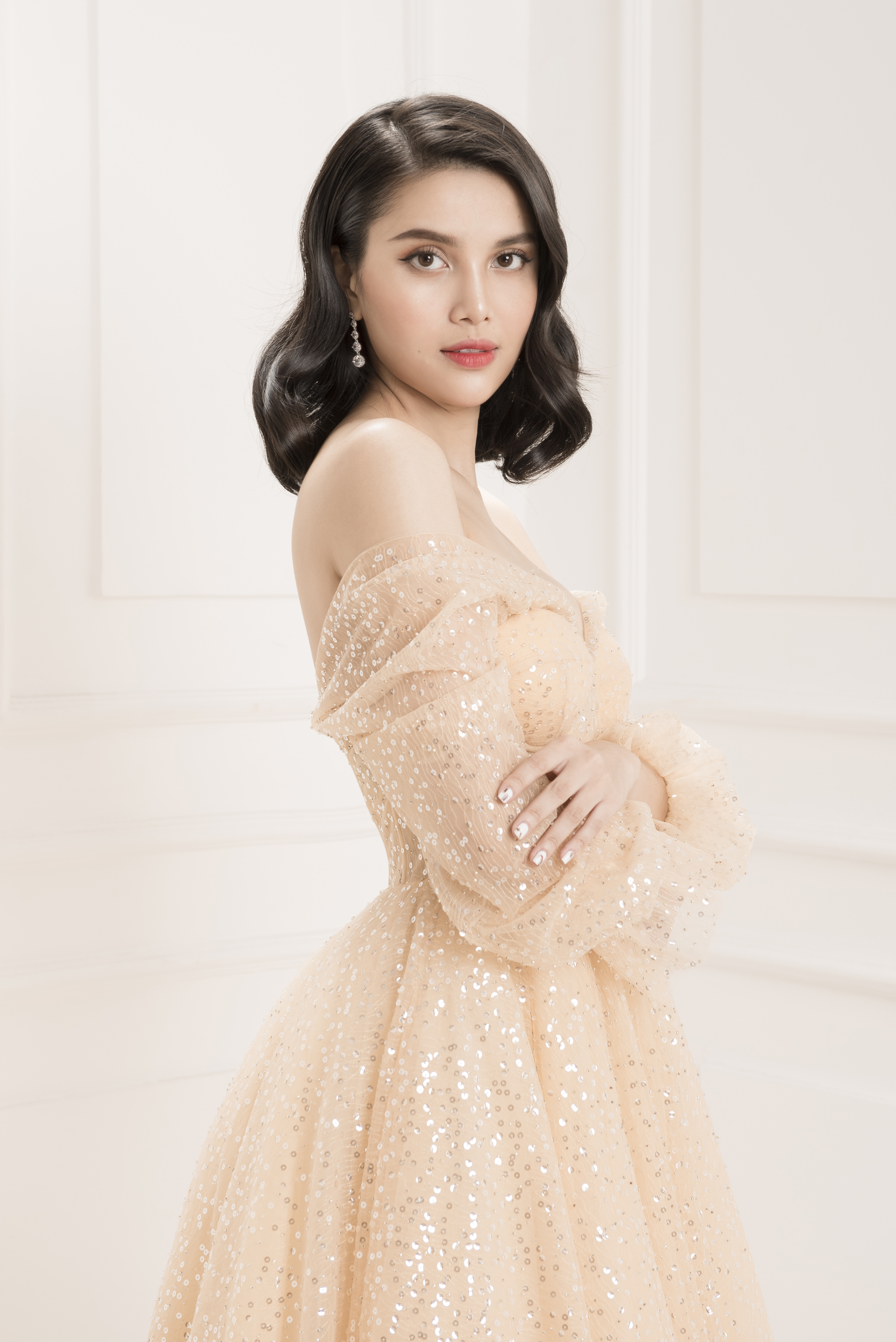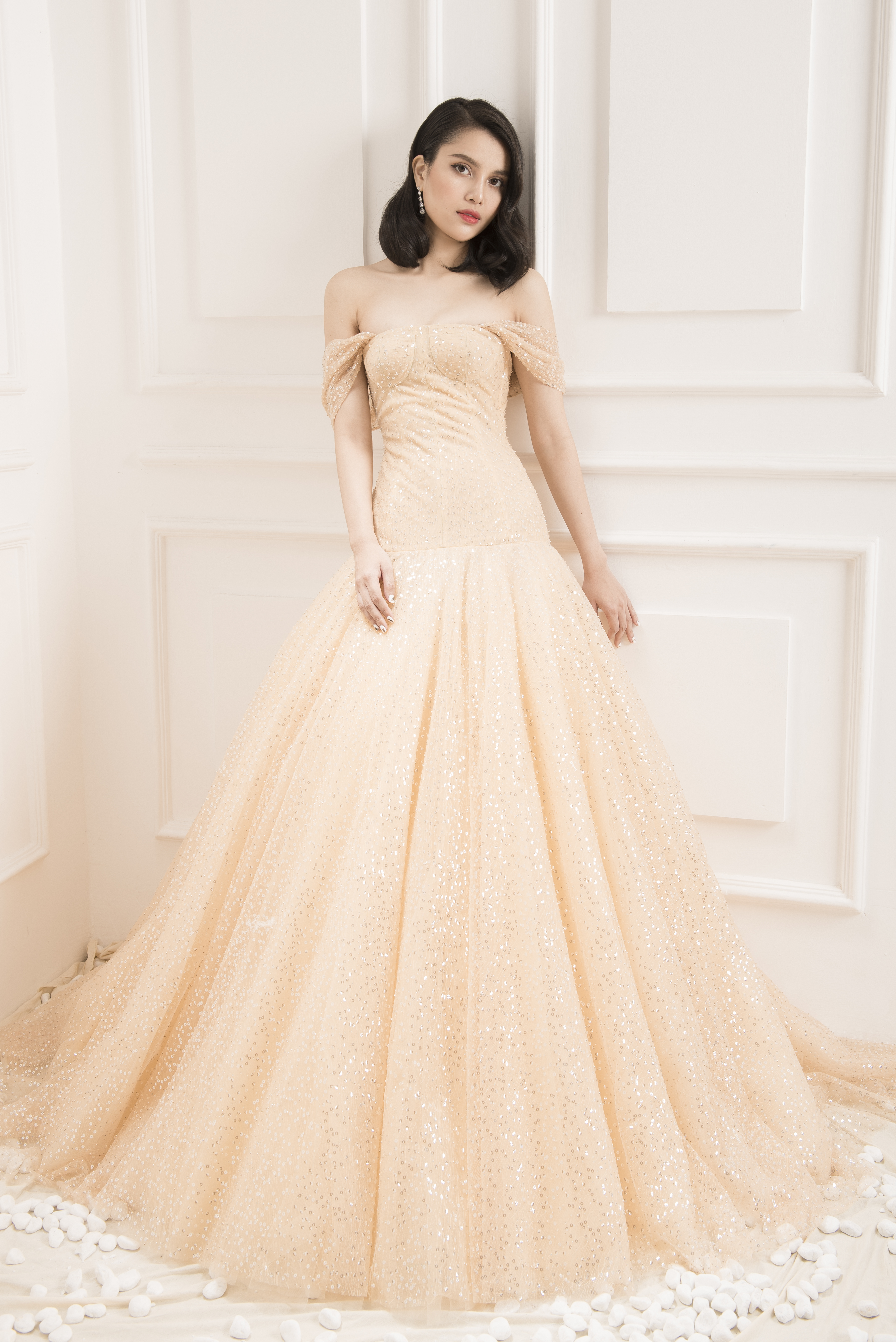 Những thiết kế dáng quây với phần vai trễ khoe trọn bờ vai trần gợi cảm cùng làn da trắng ngần của nàng á hậu hay những đường xẻ ngực tinh tế, ý nhị cùng dáng váy đuôi cá tôn lên vẻ đẹp hình thể cùng đôi chân dài thẳng tắp.