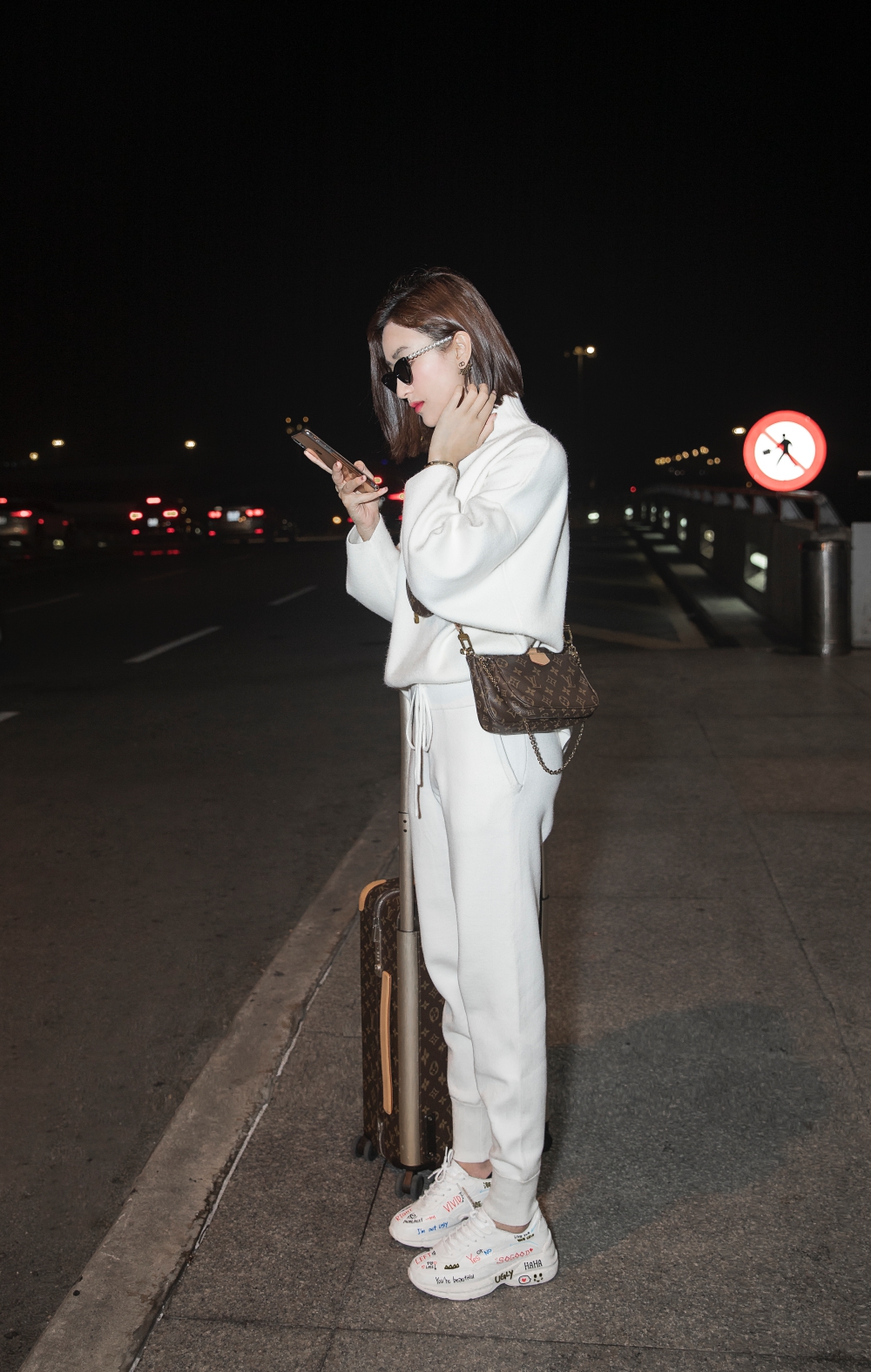 Có mặt tại sân bay lúc trời đã tối, thế nhưng ngay khoảnh khắc Hà Thu bước ra khỏi xe đã “sáng” bừng sân bay, thu hút sự chú ý của nhiều người. Diện nguyên cây đồ màu trắng nổi bật và “chất lừ” với phong cách street style, “nàng thơ xứ Huế” đã khiến cho ngay cả fan hâm mộ cũng “mắt tròn mắt dẹt” với sự thay đổi này của cô nàng.