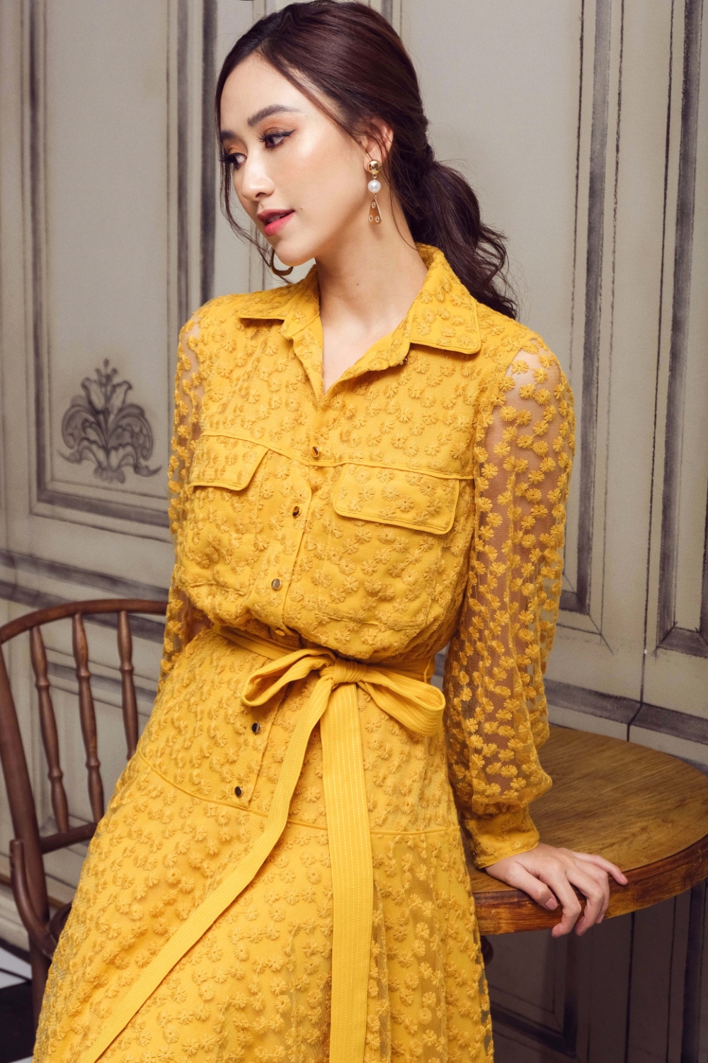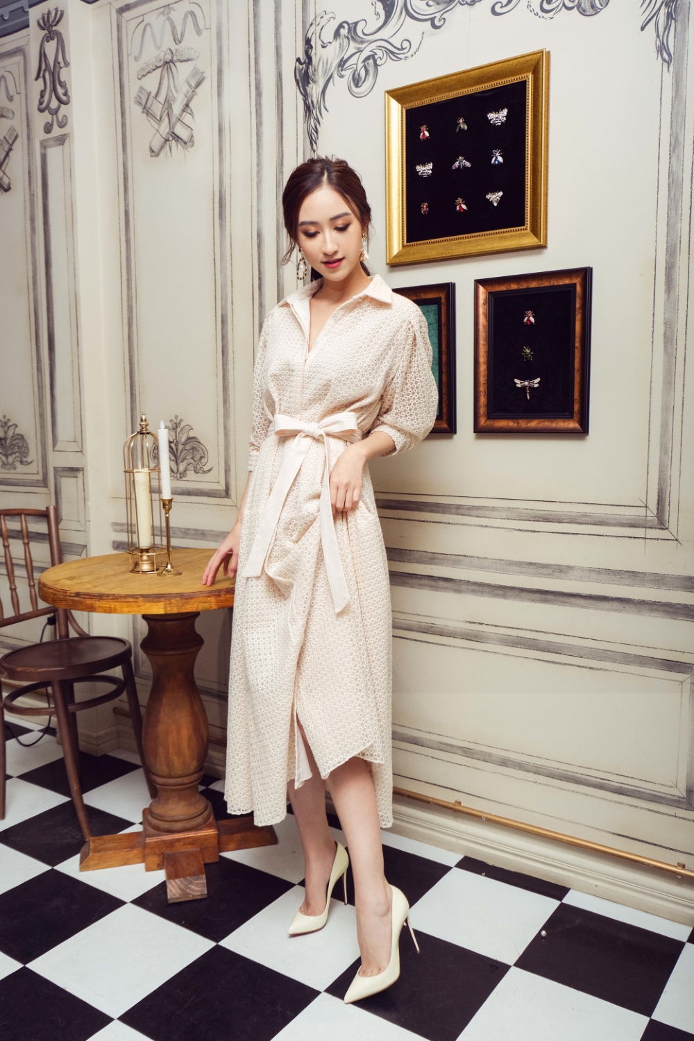 Những chiếc đầm xòe cổ sơ mi được Lê Thanh Hòa cách điệu, giúp thoát khỏi khuôn mẫu thông thường, giúp người mặc có thể lựa chọn khi đi làm nhưng vẫn toát lên sự thoải mái, thời thượng.