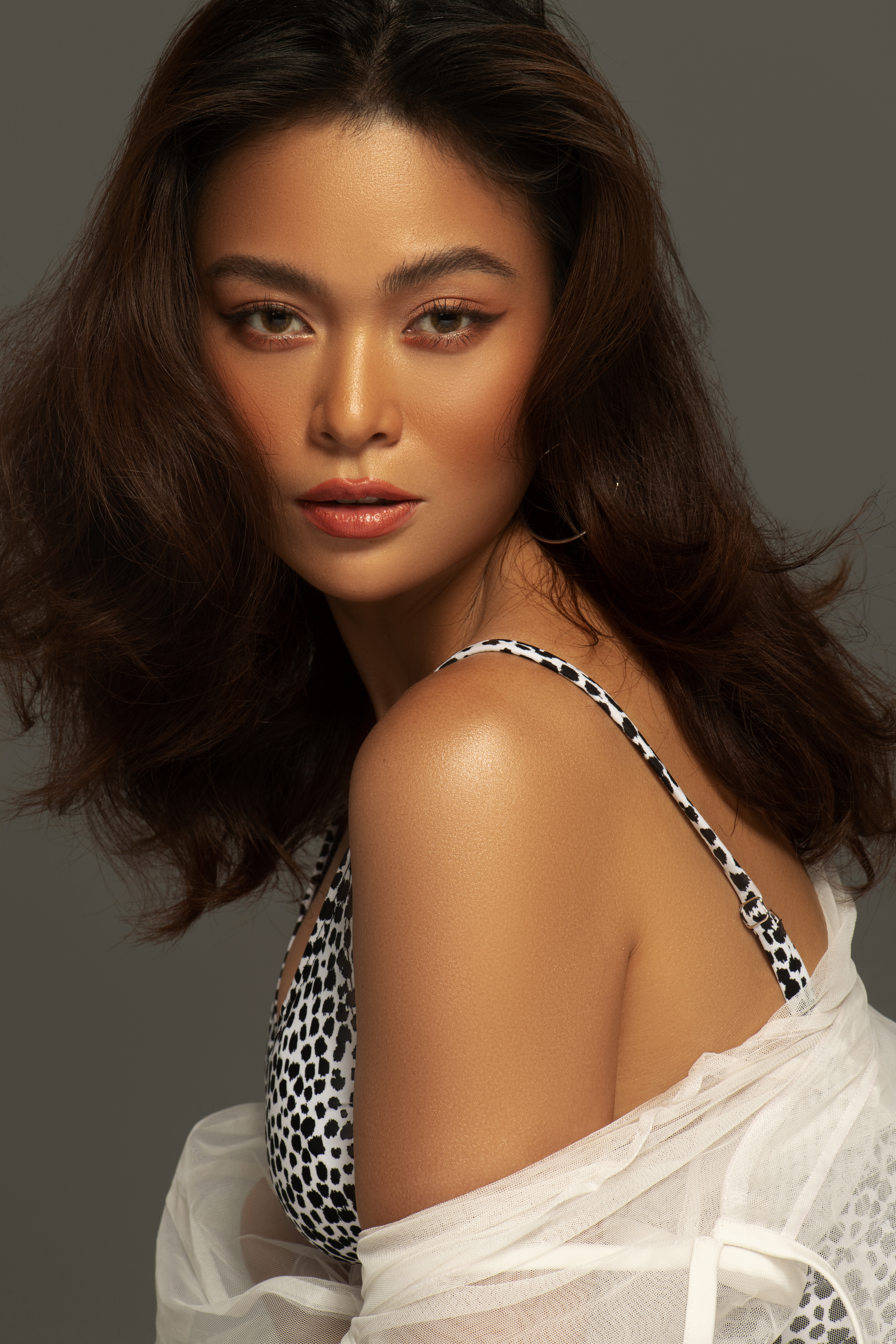 Hòa cùng xu hướng trang phục in họa tiết động vật, chân dài chọn cho mình thiết kế một mảnh với phom dáng basic, cổ xẻ sâu… nhưng chính chất liệu vải đã làm tiền đề giúp tôn lên làn da nâu rắn rỏi của người đẹp.