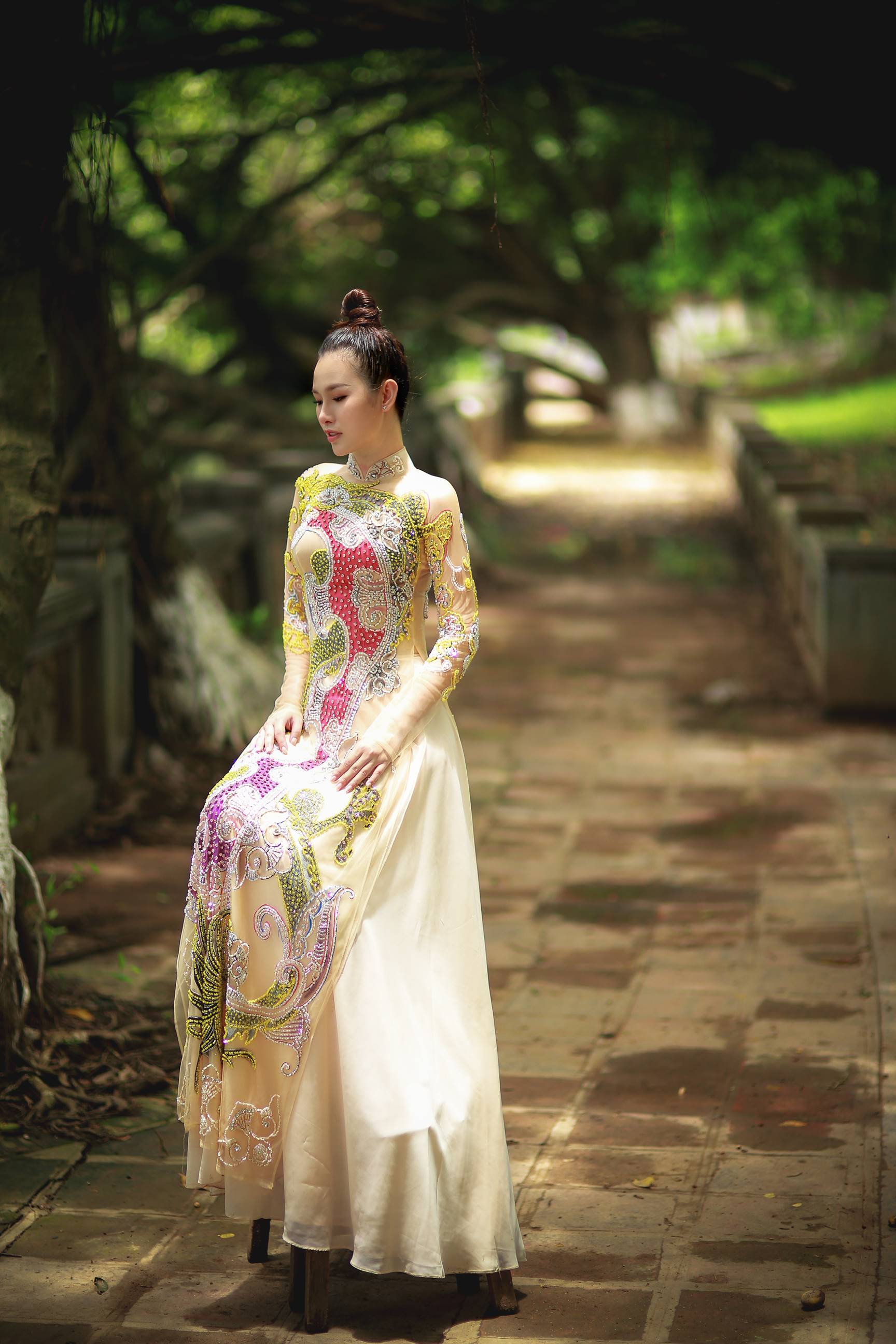 Theo người đẹp tiết lộ, từ khi theo nghệ thuật thì cô đã có vài chục bộ ảnh áo dài với đủ phom dáng và ý nghĩa khác nhau, cô cũng rất thích diện áo dài trong các sự kiện quan trọng của mình.