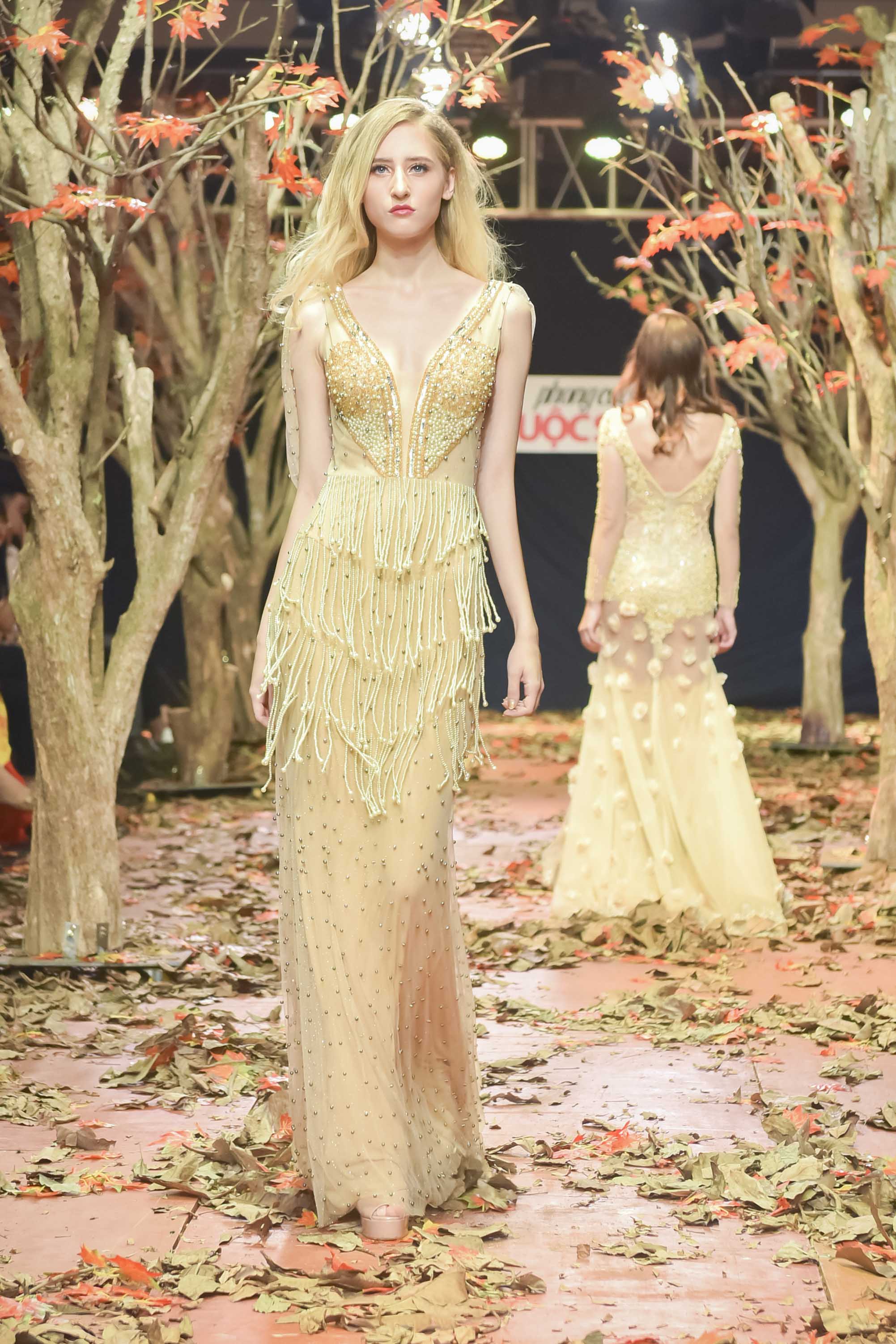 Sải bước trên sàn catwalk, người mẫu như những nàng công chúa cầu kỳ, kiêu sa, lạnh lùng nhưng đầy quyến rũ. Họ khoác lên mình những thiết kế lộng lẫy, tuyệt đẹp với nhiều phom dáng, màu sắc khác nhau.