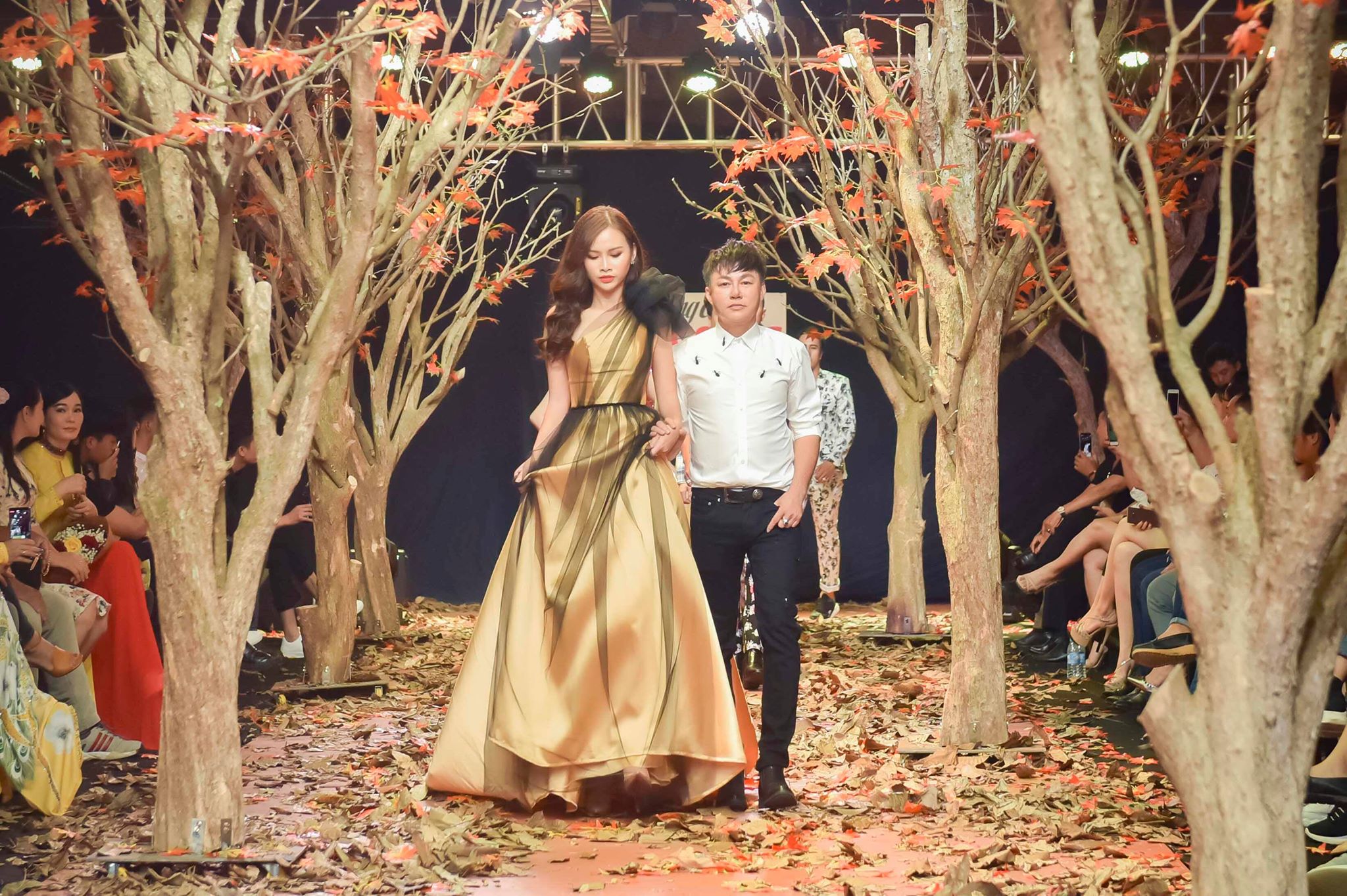 Lấy cảm hứng từ mùa thu có lá vàng rơi, thời tiết se lạnh, cùng việc trình diễn ý tưởng cũng như tạo ra một không gian thu lãng mạn, NTK đã tạo ra một sàn catwalk cầu kỳ với hàng cây, lá rụng đậm chất nghệ thuật.