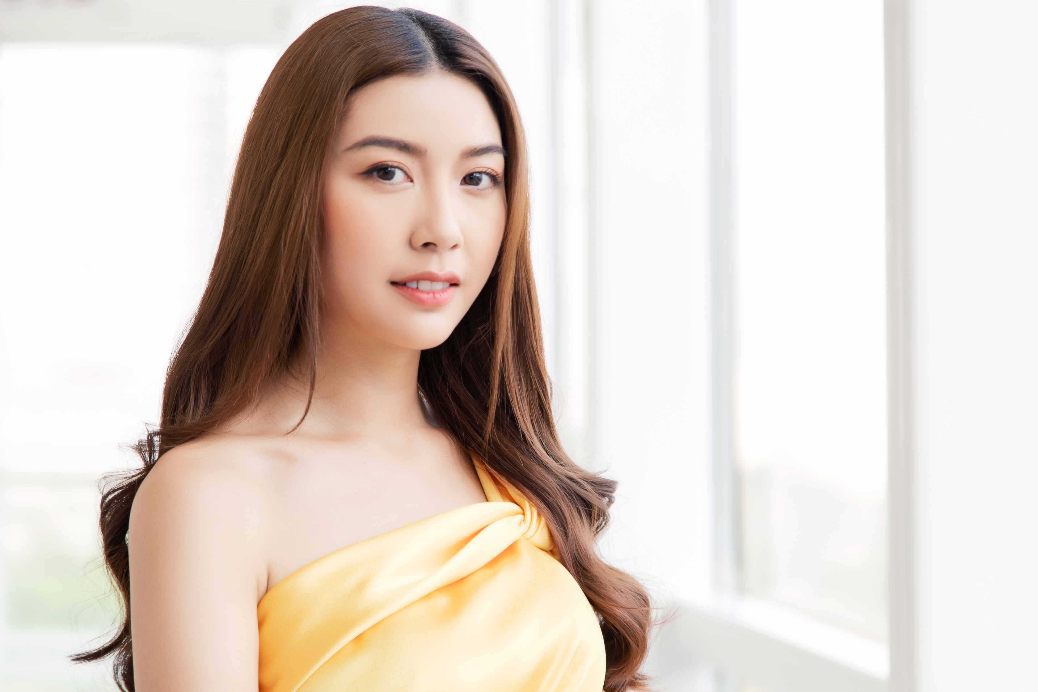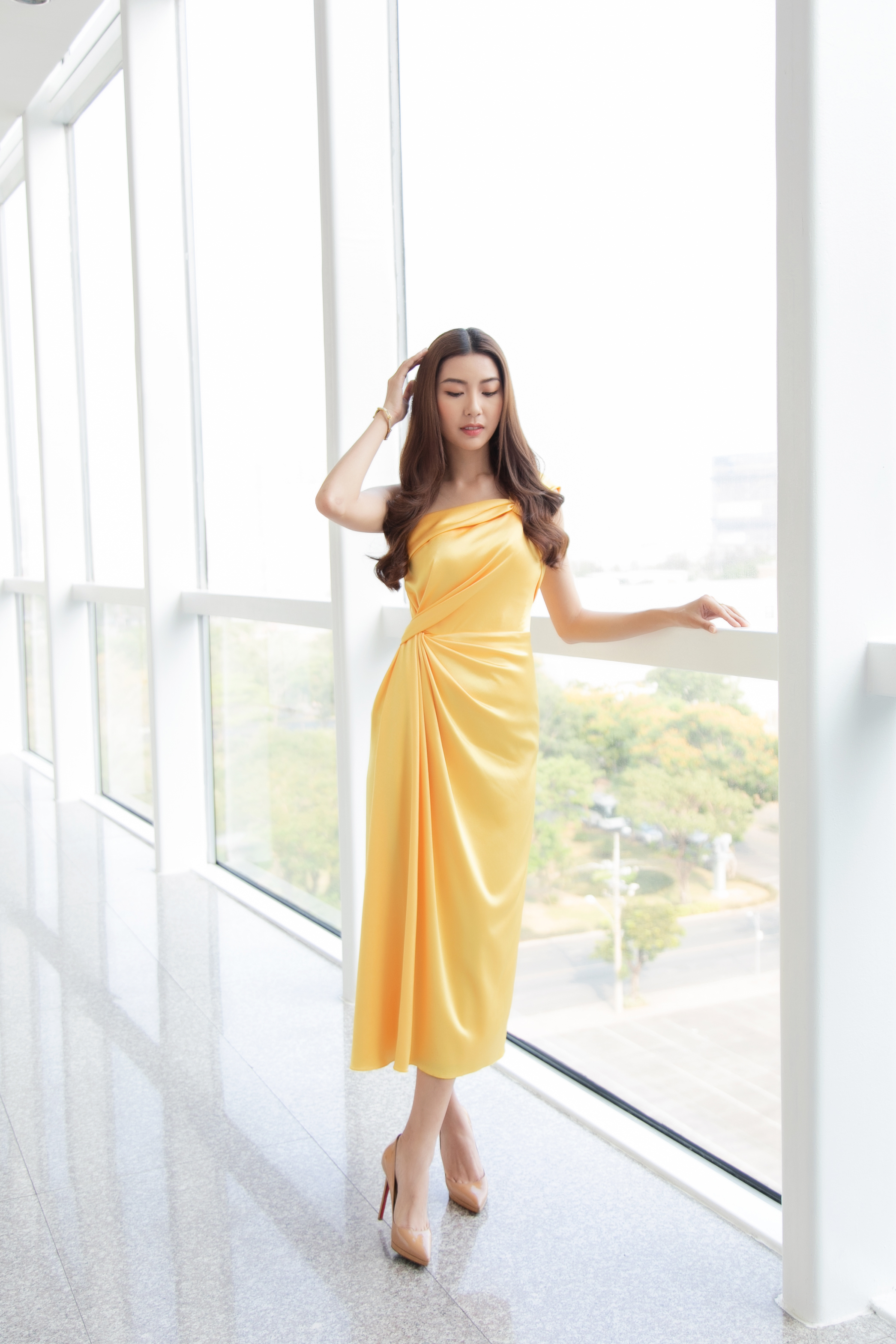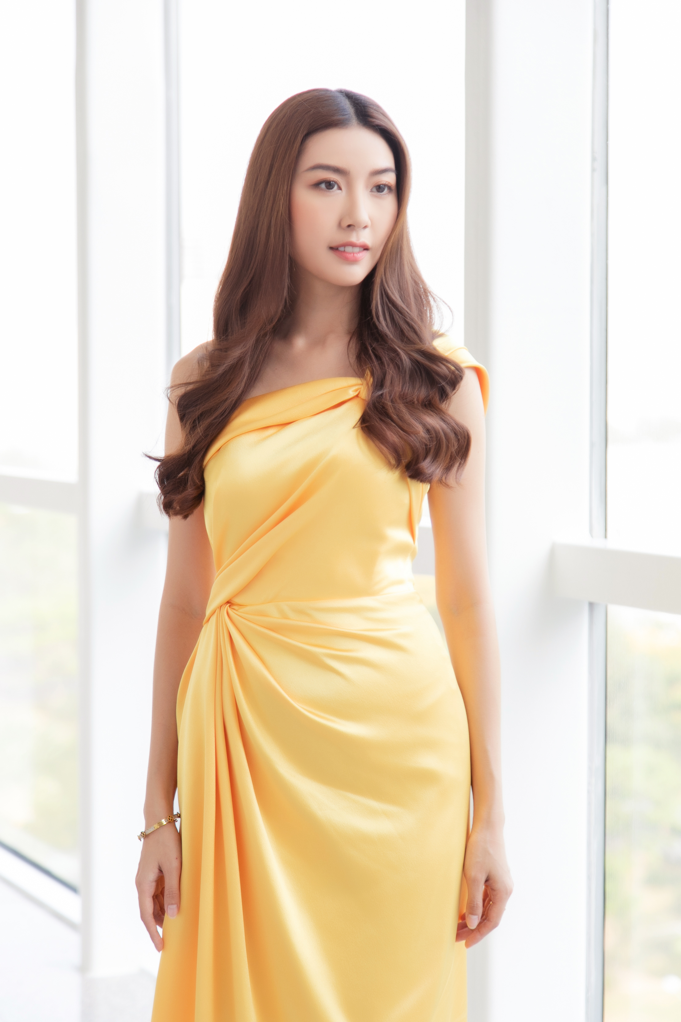 Thúy Vân vừa đảm nhận vai trò dẫn dắt cho chương trình talkshow liên quan đến lĩnh vực tài chính do một ngân hàng tổ chức. Người đẹp gây chú ý khi diện thiết kế đầm vàng nữ tính với chi tiết chéo ngực khoe đường cong nóng bỏng. Cô cũng khéo léo kết hợp cùng kiểu tóc uốn xoăn nhẹ, tôn lên vẻ nữ tính trong lần xuất hiện này.