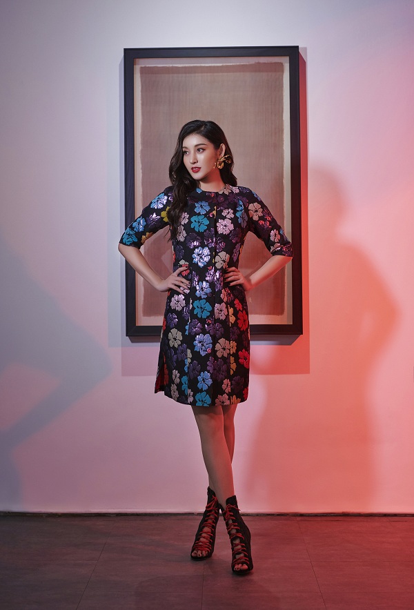 Á hậu thả dáng trong thiết kế váy hoa tay dài kín đáo cùng phụ kiện bông tai oversized bắt mắt