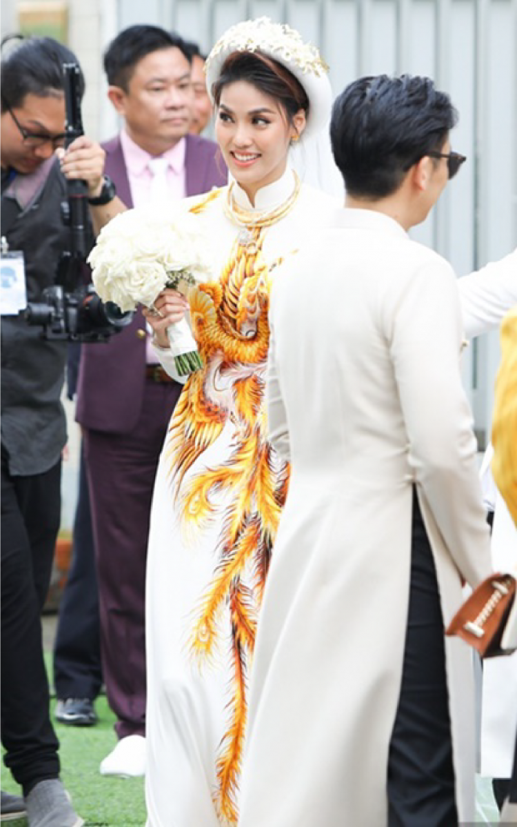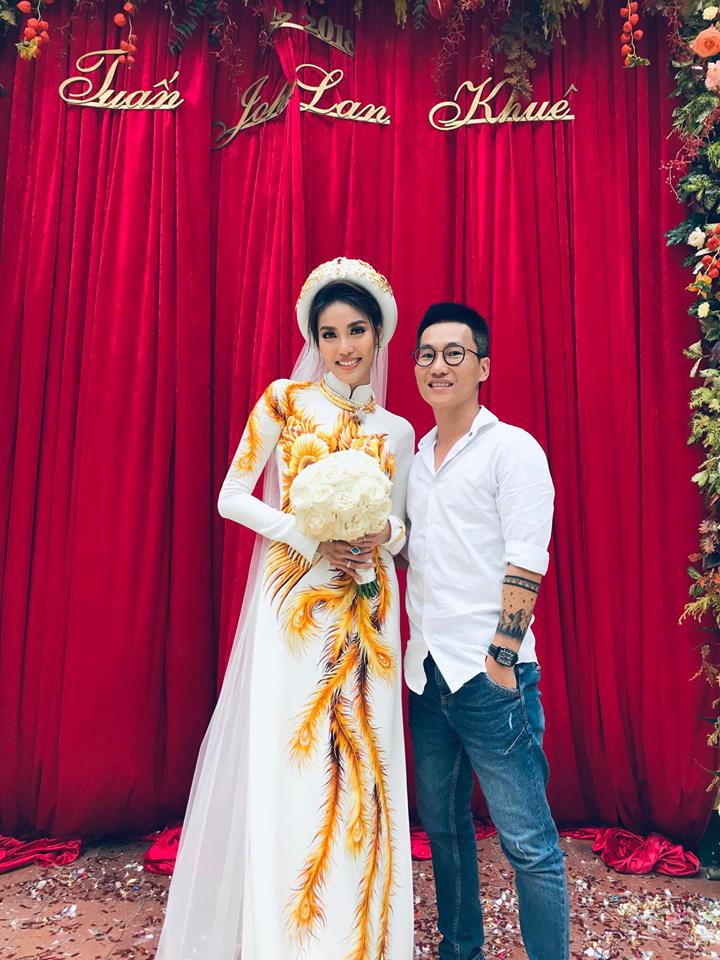 Diện chiếc áo dài trắng thanh nhã, Lan Khuê xuất hiện sang trọng, đẹp vô ngần. Quả xứng danh Hoa khôi Áo dài, vẻ ngoài trong ngày trọng đại của cô khiến không ít người phải ngẩn ngơ nhìn ngắm.
