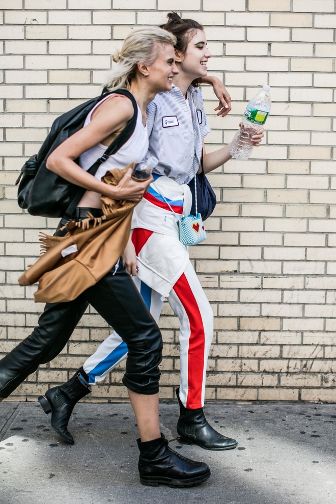 Quần thể thao ống rộng mix cùng boots cao gót giờ là điều hết sức bình thường mà lại còn trendy nữa nhé các nàng.