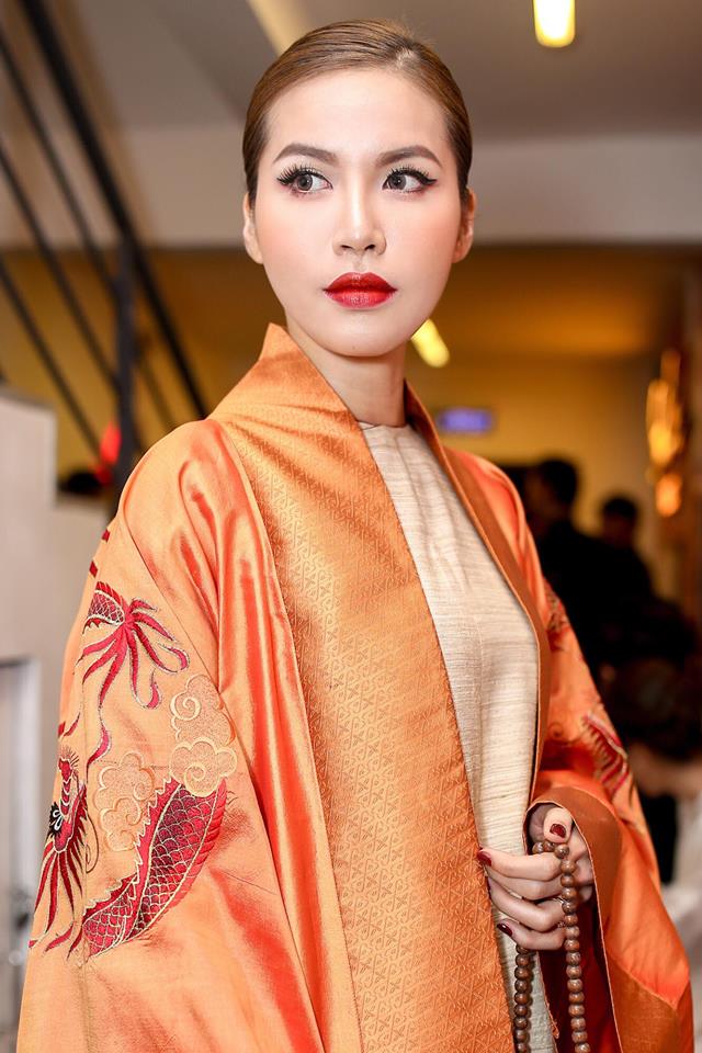 Eyeliner kẻ mảnh và xếch cũng khiến diện mạo của Tú nhìn ấn tượng hơn. Qua lần này, Tú thử chăm dùng son đỏ hơn xem vì nhìn Tú rất rạng rỡ với kiểu trang điểm này.