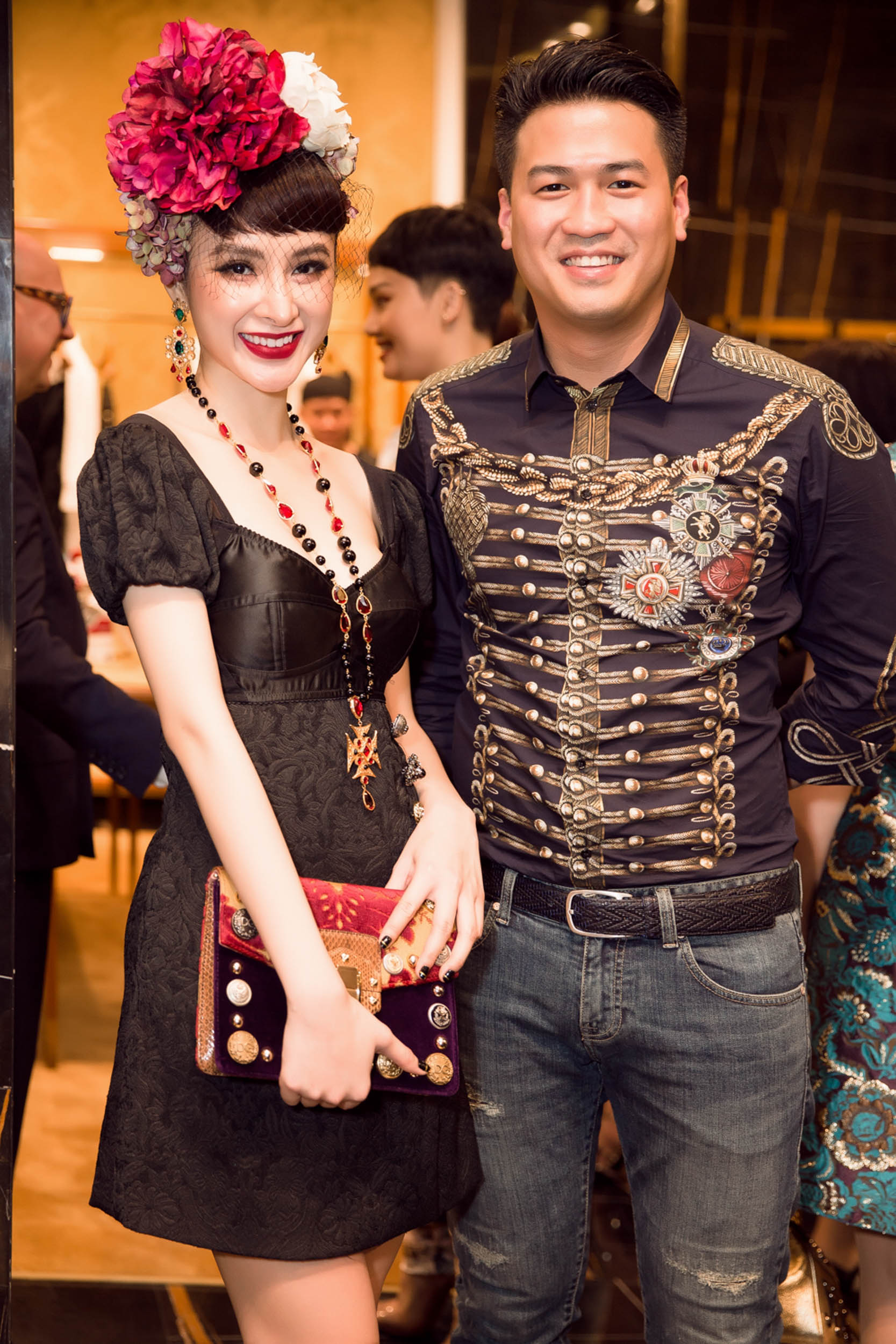 Sự kiện chào mừng nhà thiết kế Dolce danh tiếng đến Việt Nam diễn ra vào ngày 17/11, tại TP.HCM, Dù khá bận rộn quảng bá bộ phim Glee, nữ diễn viên xinh đẹp Angela Phương Trinh vẫn dành thời gian để đến chúc mừng nhà thiết kế của thương hiệu Dolce & Gabbana danh tiếng. Hóa thân thành nàng thơ của Dolce & Gabbana, Angela Phương Trinh nổi bật với vòng hoa và nguyên cây D&G.