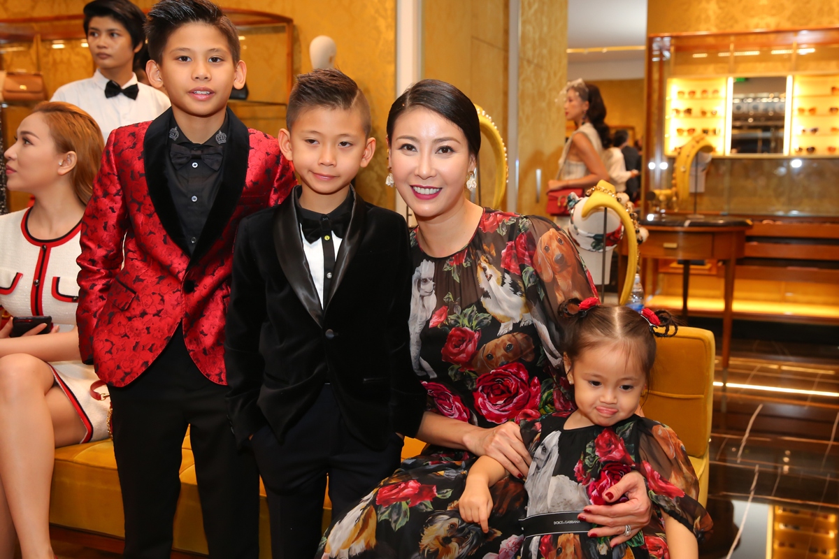 Á hậu Lê Phương cùng ba con gái đến ủng hộ chi nhánh mới của Dolce & Gabbana tại Sài Gòn.
