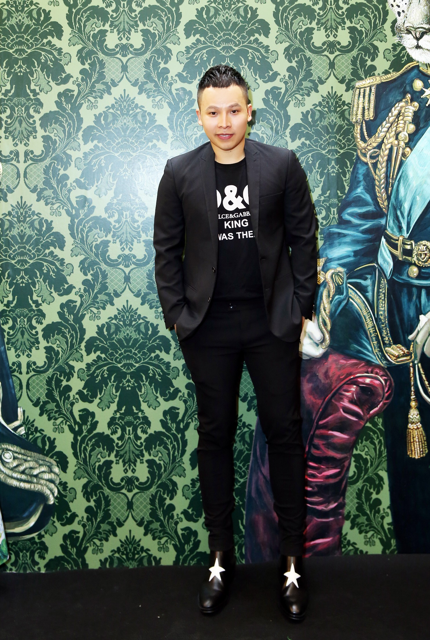 Phillip Nguyễn, em chồng nữ diễn viên Hà Tăng cũng là một tín đồ của thương hiệu đắt giá này. Anh chọn mẫu áo sơmi in họa tiết baroque của hãng để chào đón nhà thiết kế danh tiếng.
