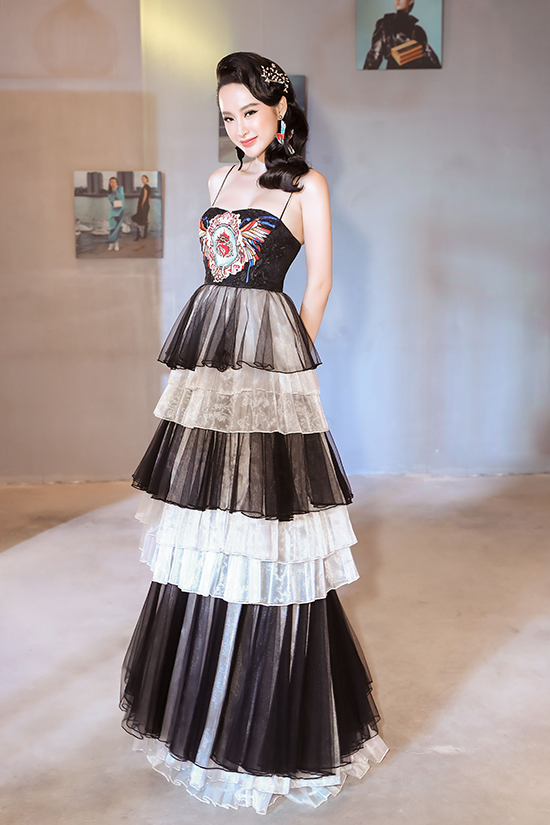 Angela Phương Trinh tiếp tục chứng minh đẳng cấp “Nữ hoàng thảm đỏ” khi diện một mẫu đầm xếp tầng của nhà thiết kế Công Trí.