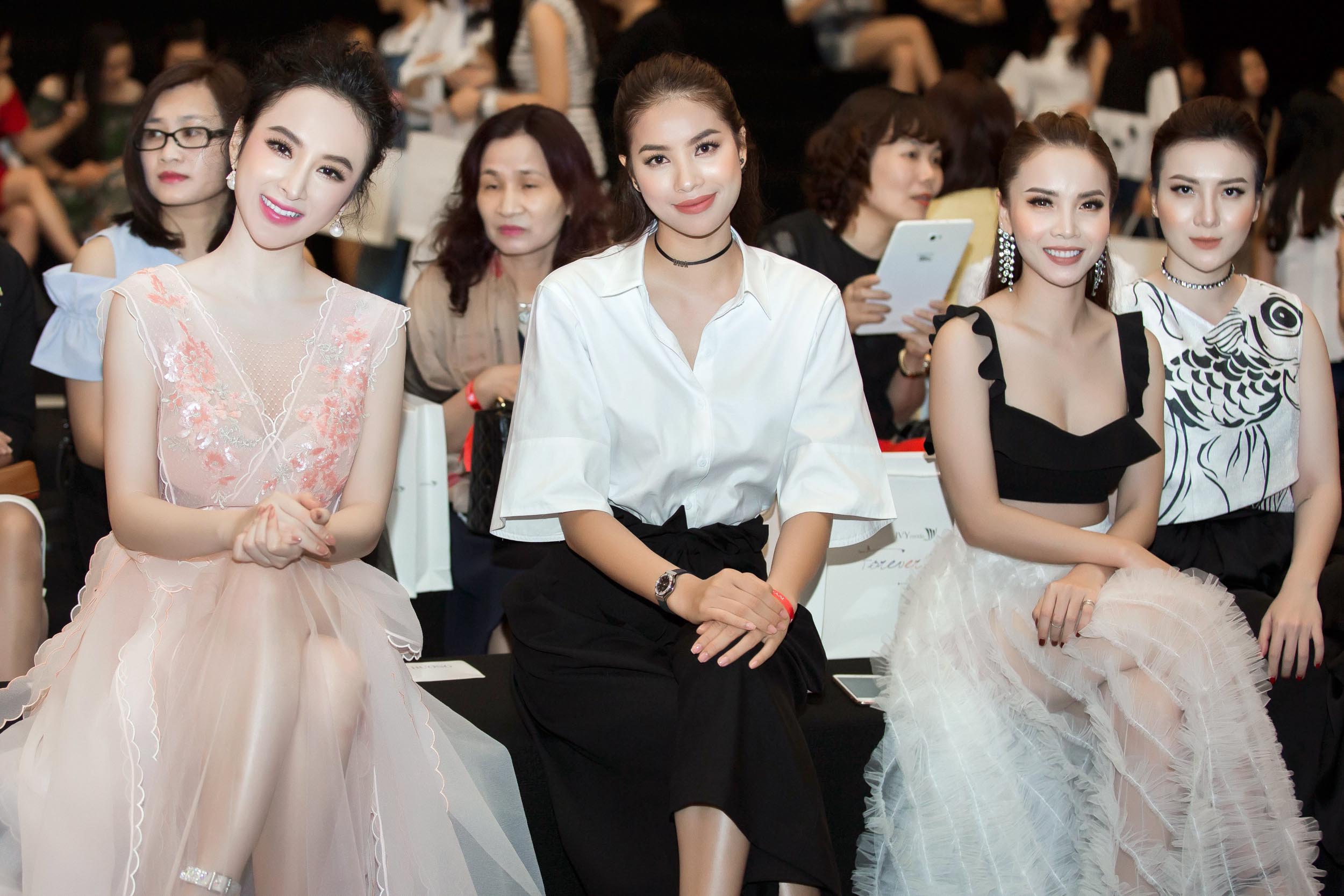 Tình cờ gặp gỡ nhau trên hàng ghế front-row, Angela Phương Trinh cùng Hoa hậu Phạm Hương và Yến Trang - Yến Nhi tâm sự về các kế hoạch trong tương lai. Nữ diễn viên Taxi, em tên gì! còn thổ lộ với Hoa hậu Hoàn vũ 2015 về vai diễn sắp tới của mình trong phiên bản Việt hóa của “She was pretty”, dự kiến sẽ khởi quay vào giữa tháng 5. Lần ra thăm Hà Nội này cũng là dịp để cô cùng hai đạo diễn Bảo Nhân và Nam Cito casting vai diễn cho bộ phim Mối tình đầu của tôi.
