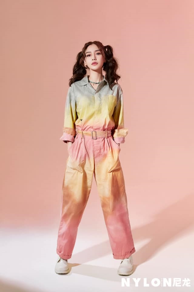 Angelababy nhí nhảnh , đáng yêu trong shoot hình thời trang cho tạp chí,cô liên tục diện các thiết kế loang lổ tie-dye đầy sành điệu từ váy cho đến các bộ jumpsuit