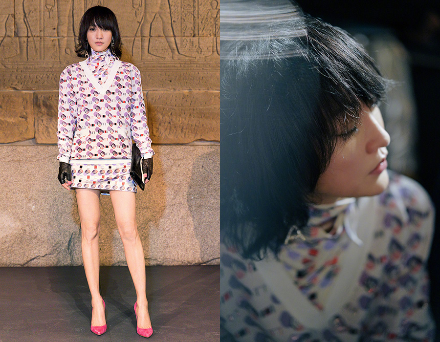 “Kế Hoàng hậu” mặc thiết kế từ BST Xuân Hè 2019 của Chanel phối cùng găng tay da làm phụ kiện đặc sắc xuất hiện tại show diễn Métiers d’Art Paris-New York 2018/19 của Chanel tại Bảo tàng Nghệ thuật Metropolitan ở New York cùng với mái tóc cá tính.