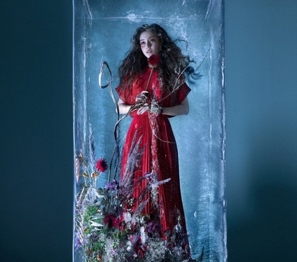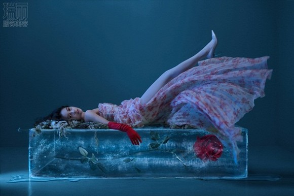 Trong bộ ảnh này , người đẹp ở trong một tảng băng và toàn thân đều phủ đầy hoa