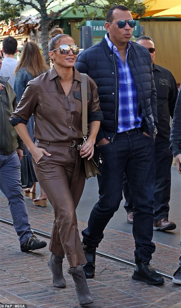Jennifer Lopez 'cực ngầu” với nguyên set đồ nâu bóng lưỡng dạo phố cùng bạn trai