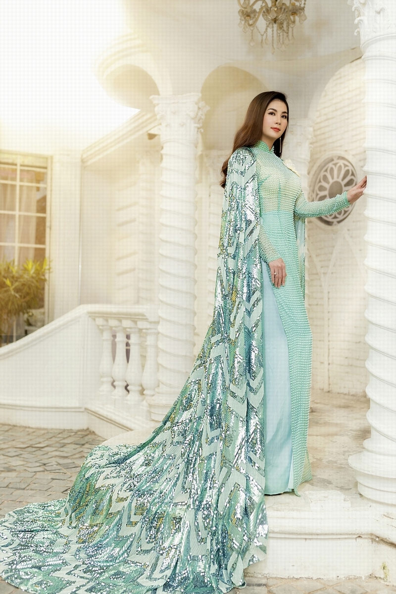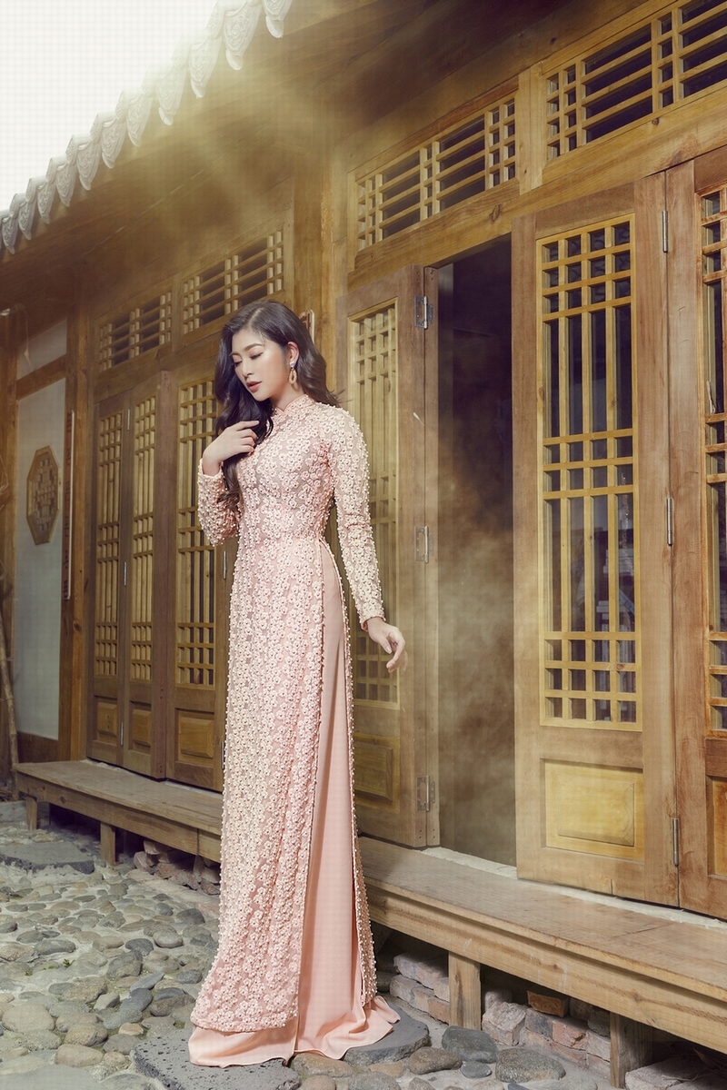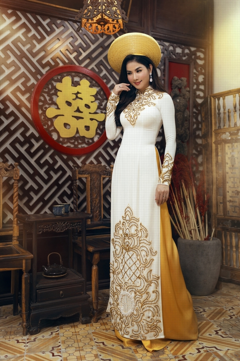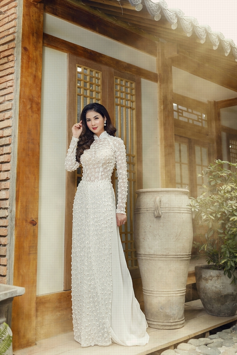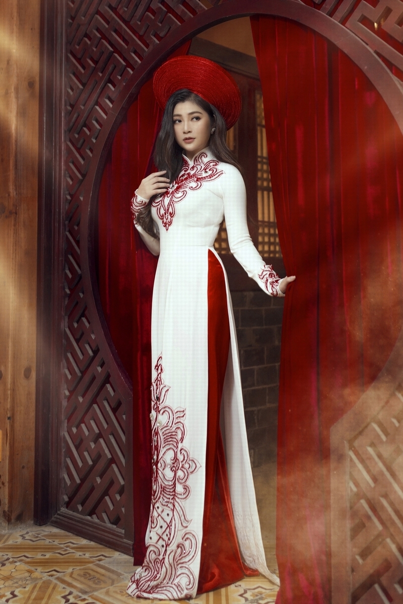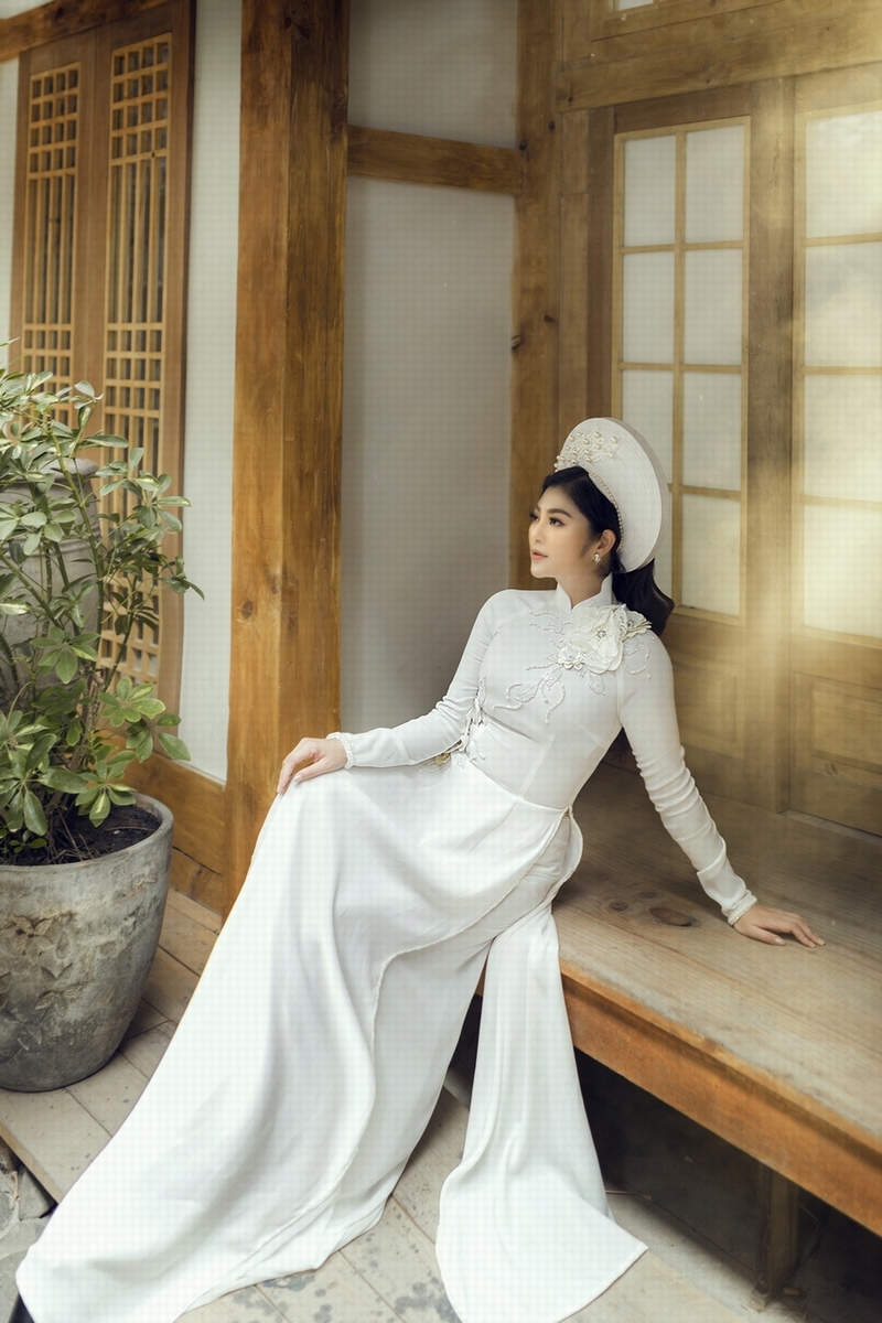 Kha Ly Thanh Trúc thể hiện mẫu áo dài đồng điệu và quyến rũ