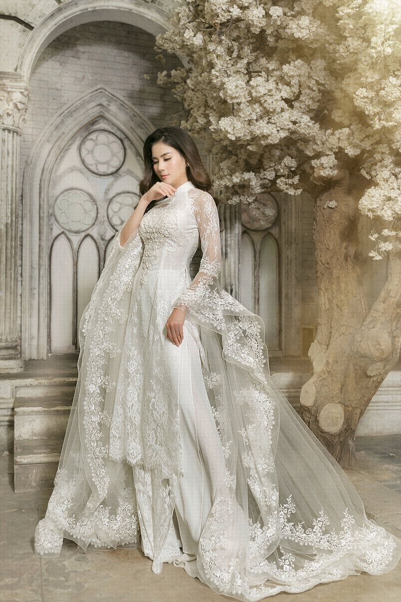 Áo dài cưới lộng lẫy cầu kì mà vẫn vô cùng tôn dáng