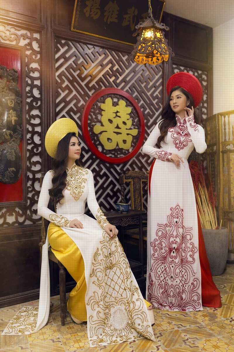 Áo dài cưới với chi tiết đính kết thủ công tỉ mỉ rất sang trọng